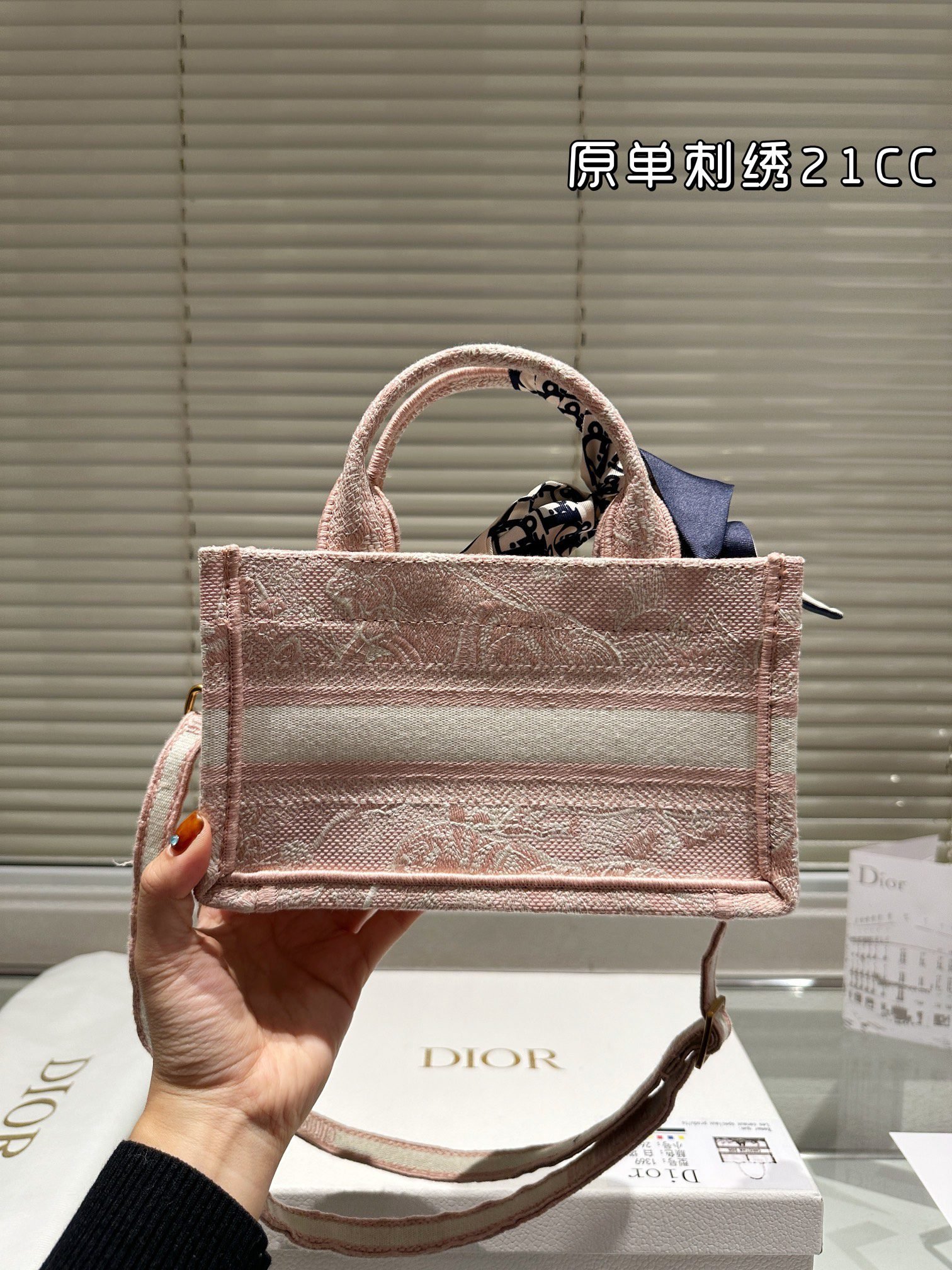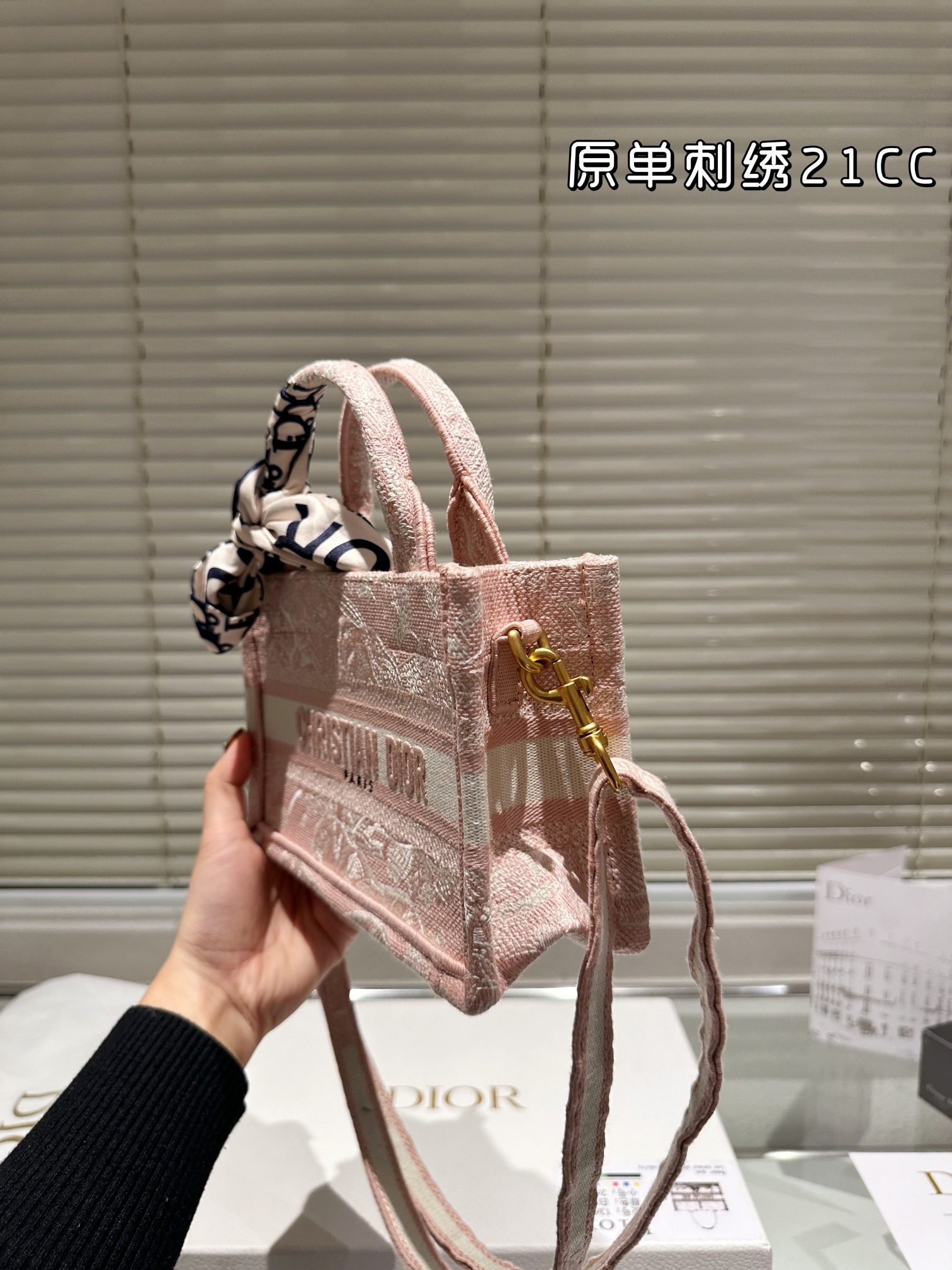 Home BAGS DIOR-BAG Pink jacquard tote bag, compact, exquisite and stylish, suitable for daily travel shopping bags