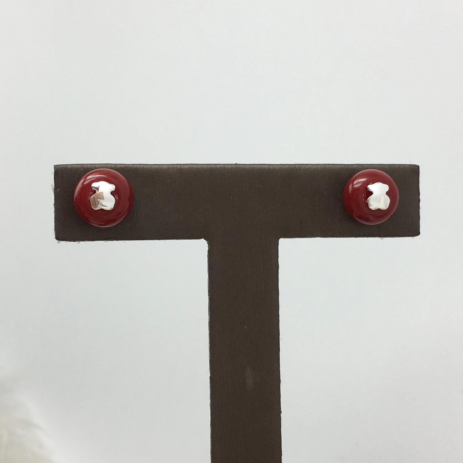 TOUS Icon Glass earrings in sterling silver and pink colored Murano glass with a bear motif in sterling silver. Size: Ø 10 mm. Push back.