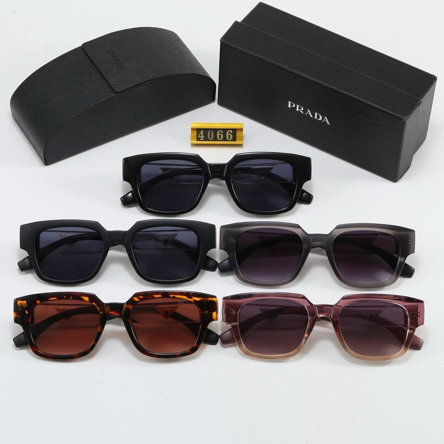 Available in five colors: glossy black, matte black, translucent gray, tortoiseshell, and pink-brown gradient. Perfect for street style, daily commutes, or special occasions, they instantly elevate outfit sophistication and showcase Prada’s signature understated luxury and modern temperament.