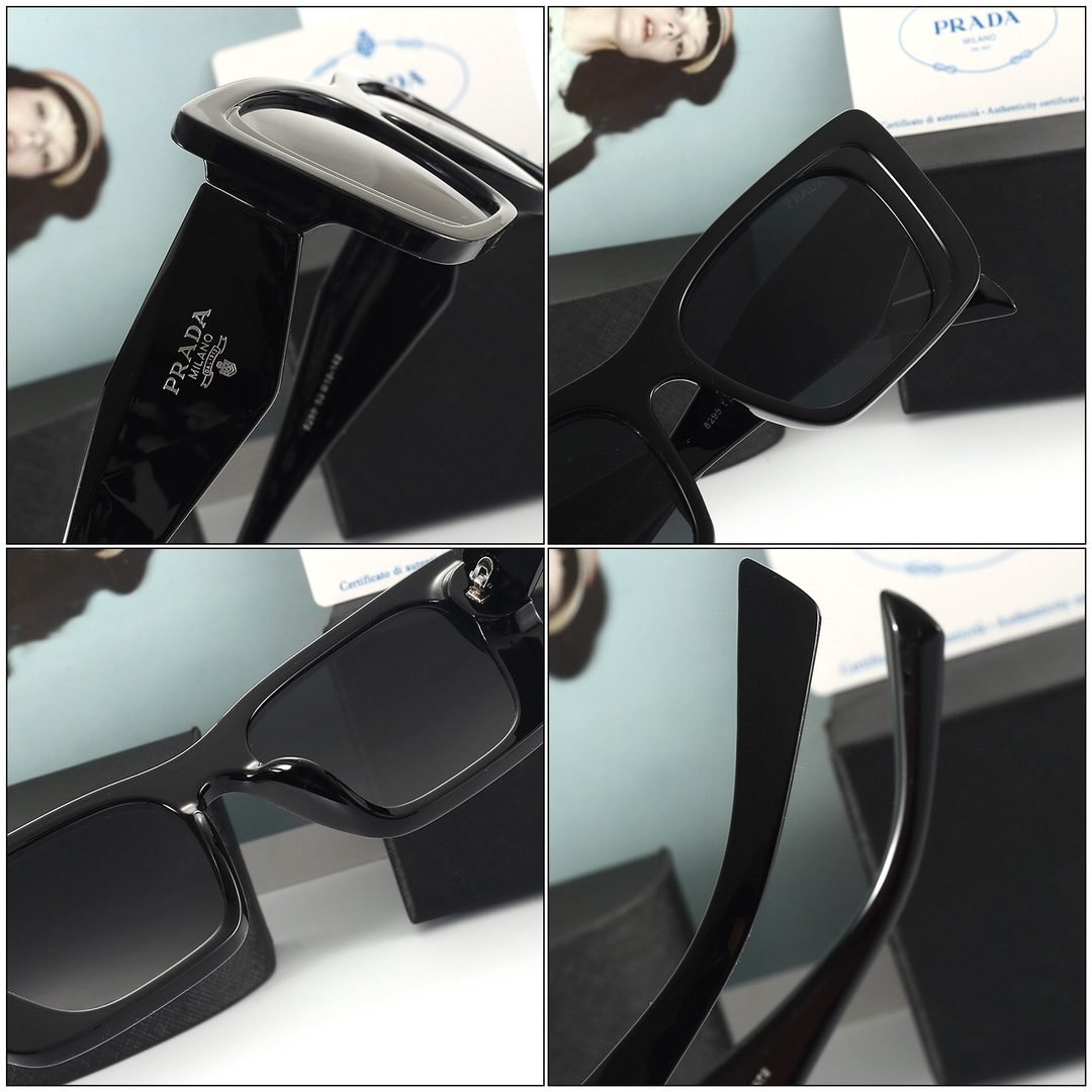 PRADA, This globally renowned luxury brand has always attracted countless consumers with its exquisite craftsmanship, excellent quality, and unparalleled fashion sense. The lenses are made with advanced technology and have anti UV and anti glare functions, which can effectively protect your eyes from sunlight damage. At the same time, the color of the lenses is moderate, which can block strong light without making the field of view too dim. Whether as a fashion accessory or for daily wear, this pair of sunglasses can add a touch of brightness to your look, showcasing your personality and taste. Come and buy now, let this pair of glasses add more brilliance and charm to your every day!