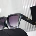 Sunglasses showcase the classic and fashionable PRADA brand with their unique square design and black plastic frame. The dark gray lenses not only provide a high-quality visual experience, but also showcase the wearer’s personality and taste. This pair of sunglasses combines aesthetics and practicality, making it a must-have item for fashionistas. Come and buy now, let this pair of glasses add more brilliance and charm to your every day!