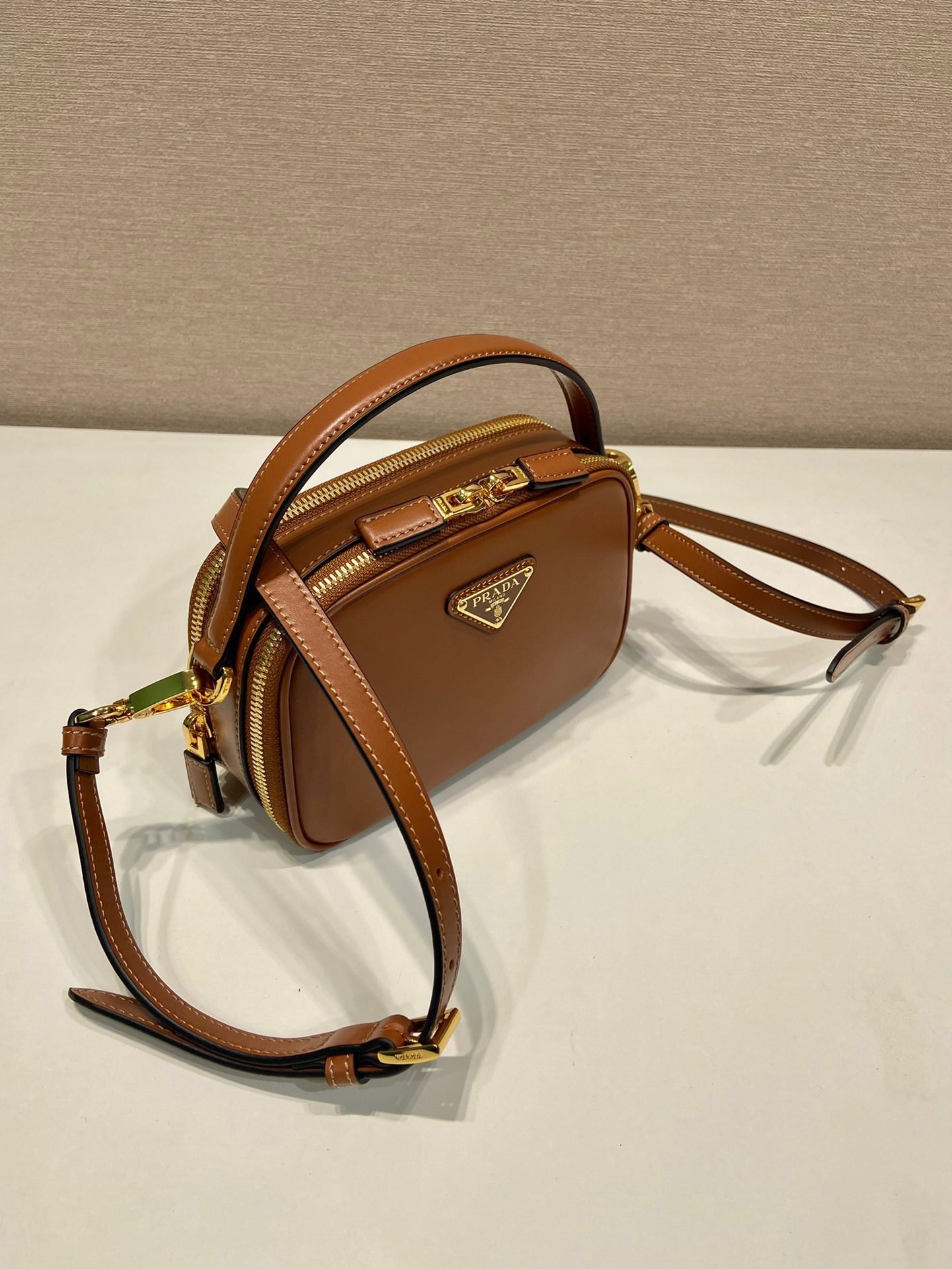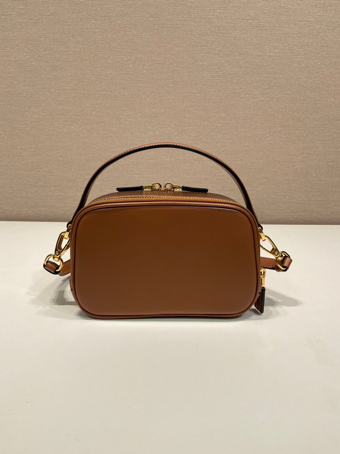 1bh203???????? This mini handbag is livened up in calfskin and inner sheepskin. The multi-functional structured design can be carried on hand or with a detachable shoulder strap, paired with a double zipper opening and enameled triangular metal logo. Large capacity space, the upper body effect is beautiful ???????? length 18.5x height 13x bottom 6.5cm