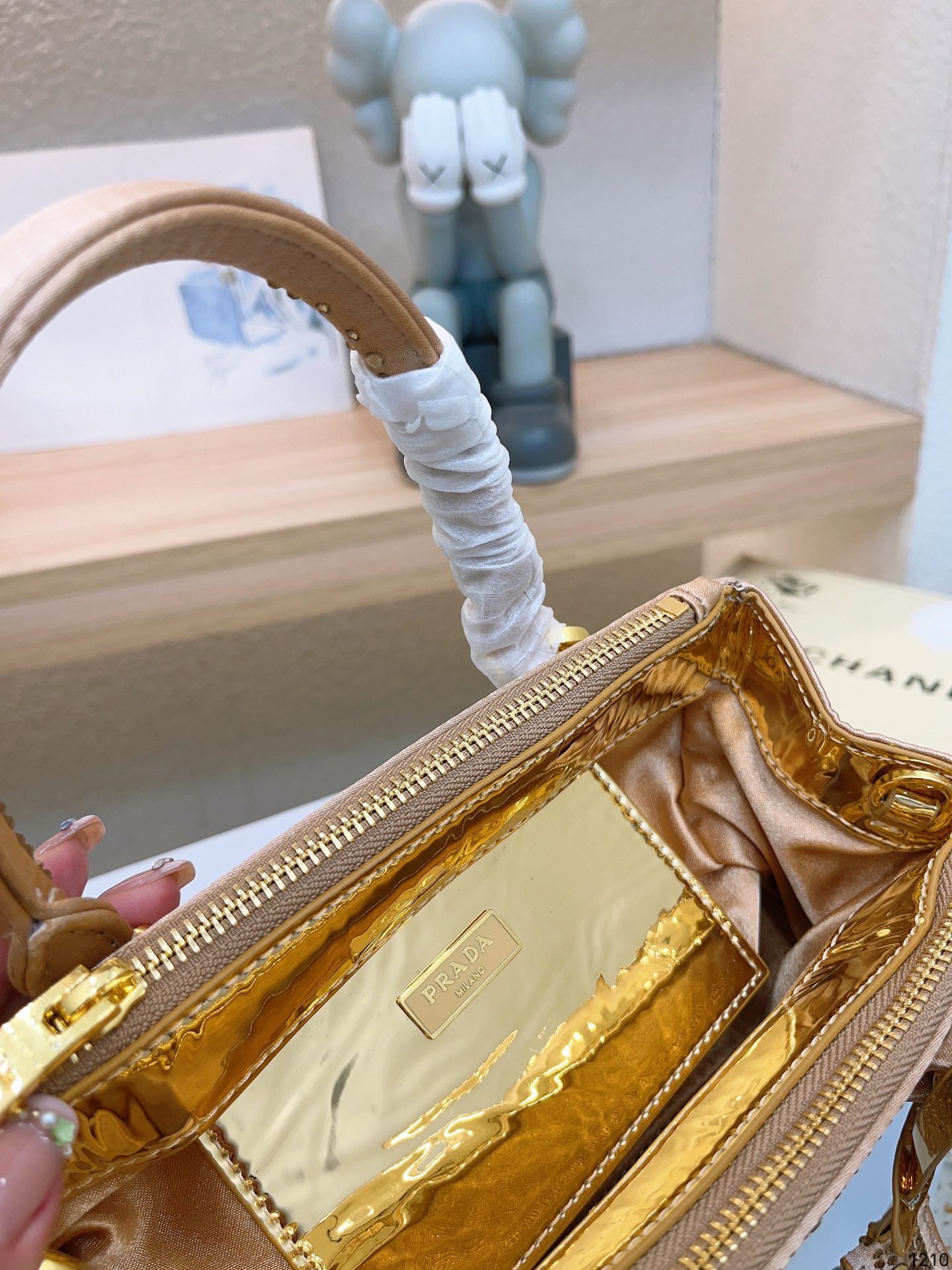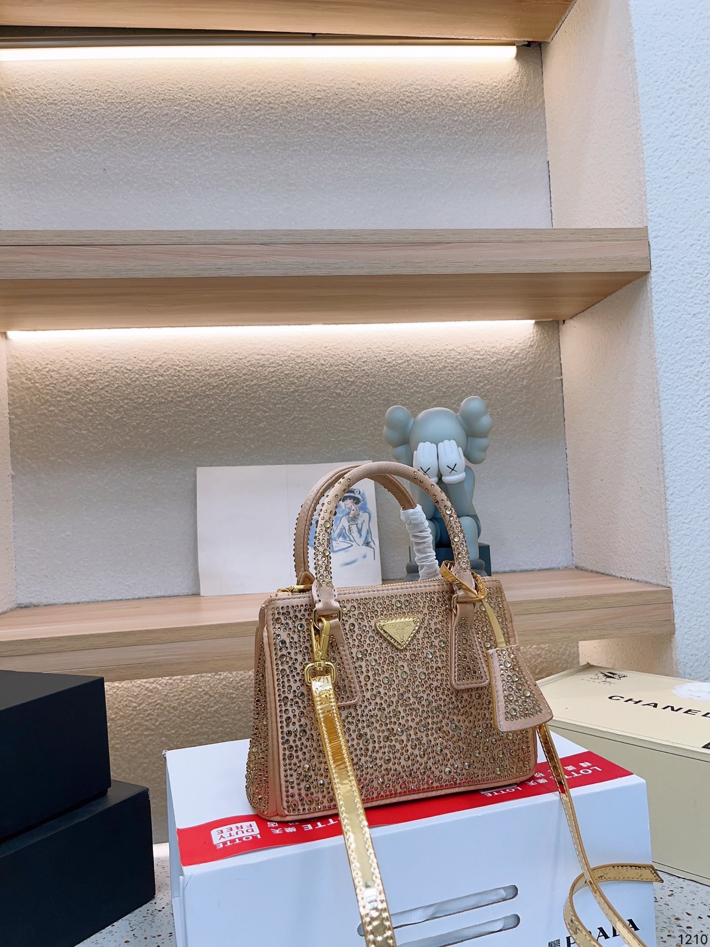 Prada this season a lot of BlingBling, not only bags and hats, clothes are burst! It’s so beautiful! This kind of see the drill can not extricate themselves! Immediately saw this crystal kill bag convex store only gold, silver, feel good like size 23*16cm