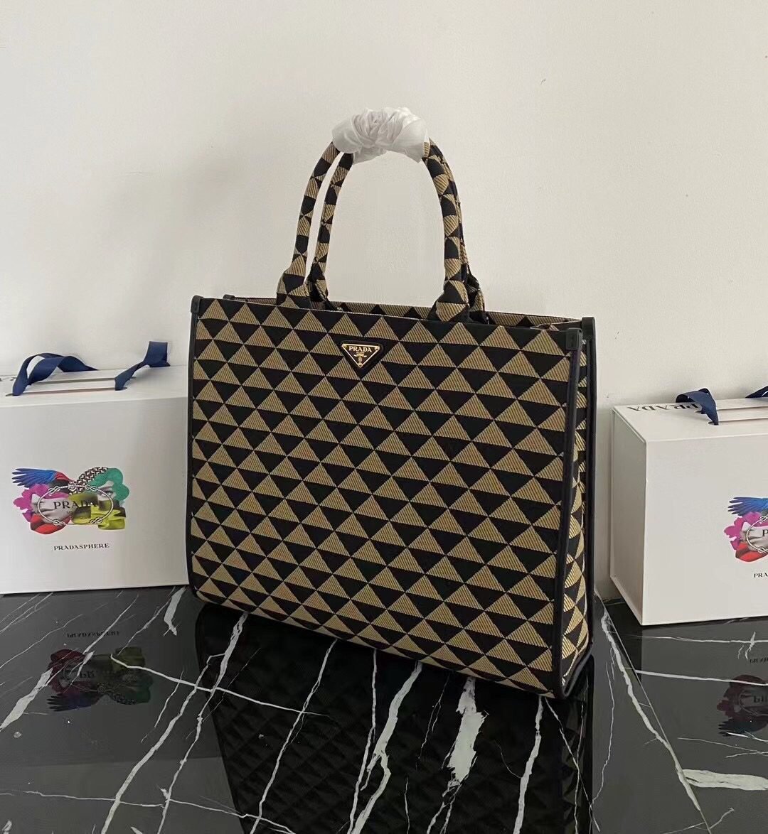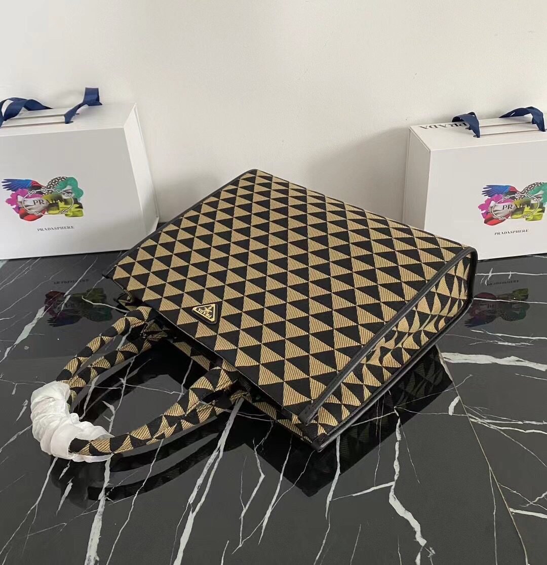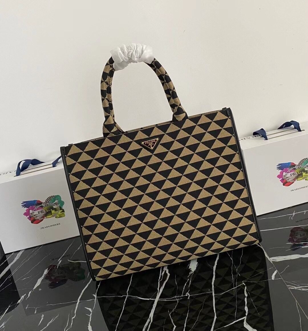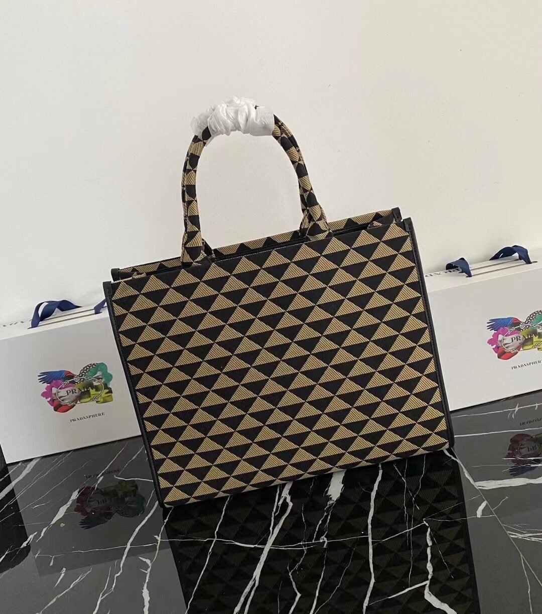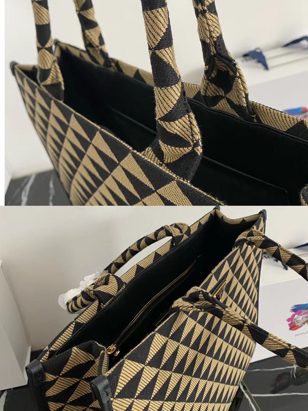 Embroidery fabric bag ????1ba356 large ???????? no long strap ???? This embroidery tote bag is designed with imported saffiano leather and unique embroidery fabric ???? large fabric hand design, simple atmosphere ???? too beautiful ???? can be xiancan be cool ????, what occasions are suitable. It is another explosive model approved by Internet red stars ???????? hurry to get it ???? Meimei ???? large size: length 39x height 31x bottom 11cm