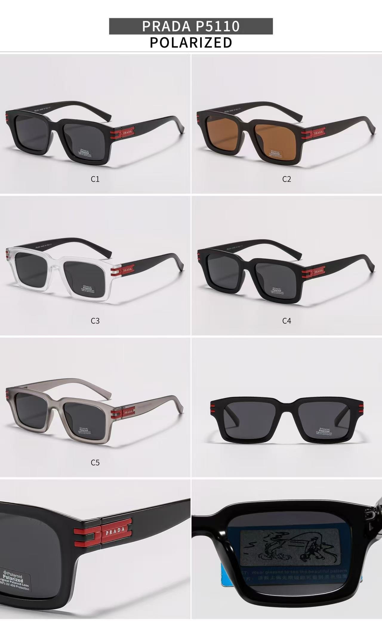 ✨ The Prada P5110 Polarized Sunglasses feature a classic square frame with red stripe accents on the temples, combining the brand’s iconic design with practical protection to make them ideal for daily outings and trend-driven styling.