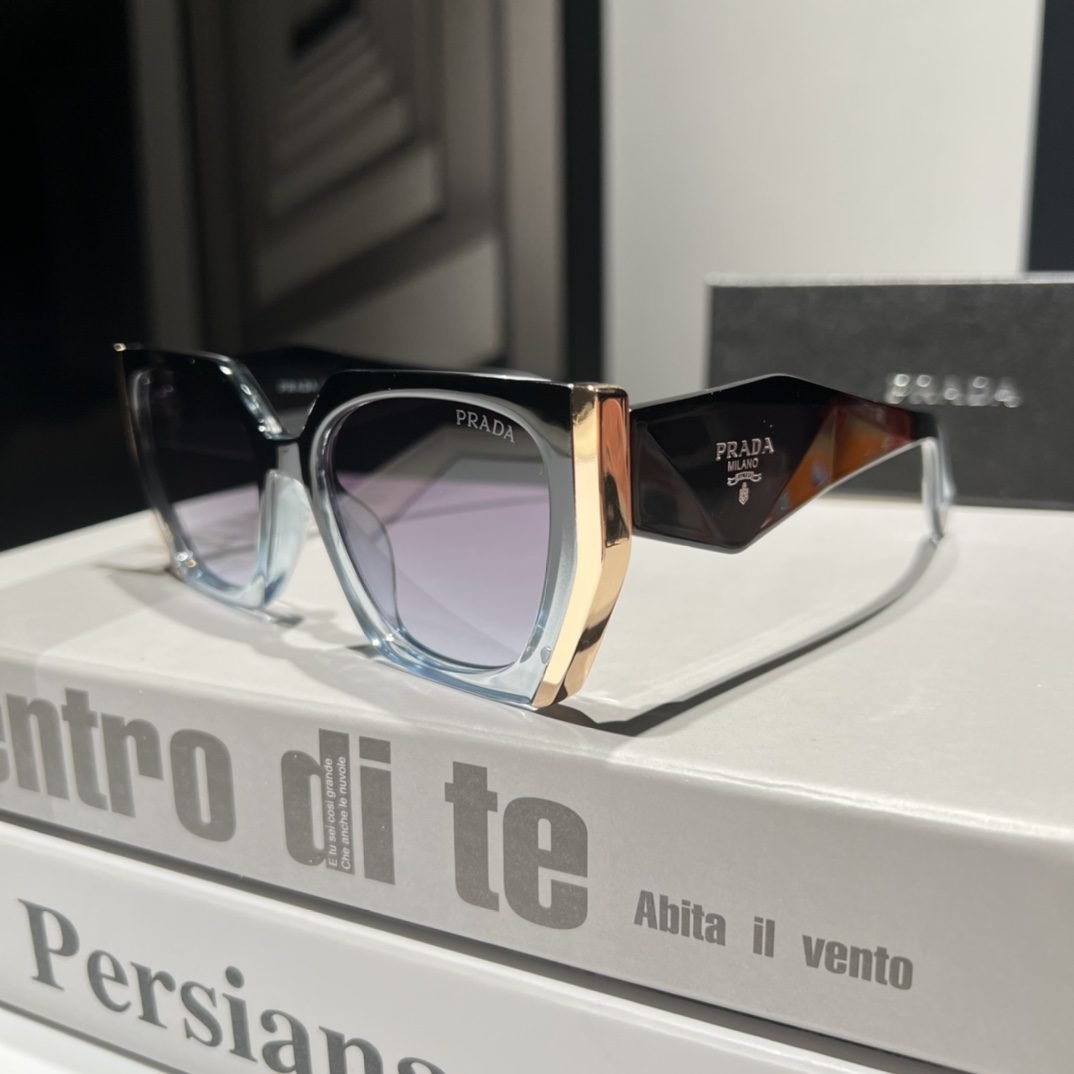 PRADA, This globally renowned luxury brand has always attracted countless consumers with its exquisite craftsmanship, excellent quality, and unparalleled fashion sense. The lenses are made with advanced technology and have anti UV and anti glare functions, which can effectively protect your eyes from sunlight damage. At the same time, the color of the lenses is moderate, which can block strong light without making the field of view too dim. Whether as a fashion accessory or for daily wear, this pair of sunglasses can add a touch of brightness to your look, showcasing your personality and taste. Come and buy now, let this pair of glasses add more brilliance and charm to your every day!