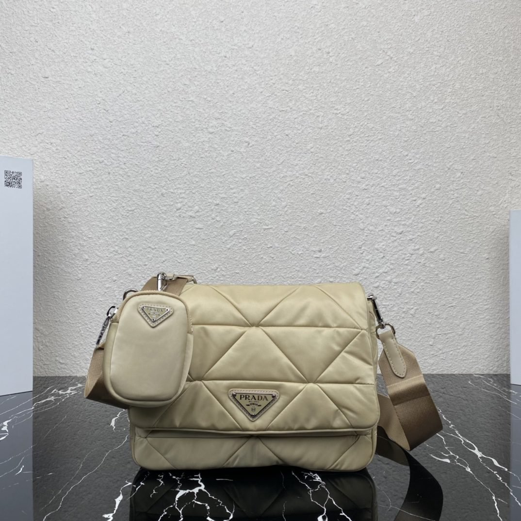The new large 3-in-1 ????1BD290???????? Prada’s iconic triangular logo is restyled into a stitching pattern for this soft-lined Re-Nylon recycled nylon shoulder bag. The sustainable Re-Nylon recycled nylon material shows the evolution of Prada fabric selection. The mini pouch is attached to the shoulder strap for a modern touch, and the front is decorated with a classic enameled triangle logo for brand touch. ???????? Dimensions: Length 24cmx height 17.5cmx bottom 8.5cm