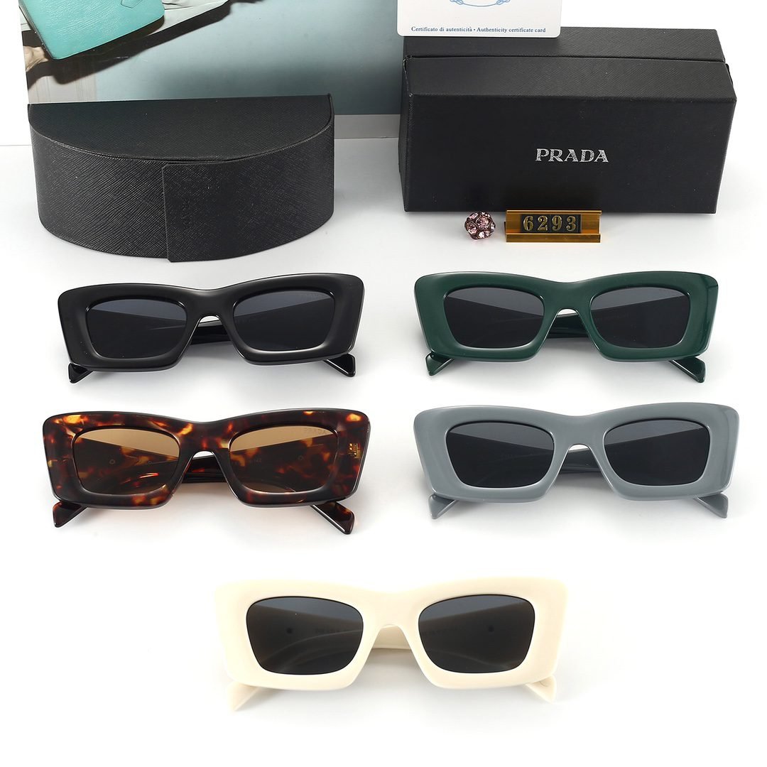Elevate your accessory collection with Prada’s rectangular sunglasses (Model 6293). Featuring chic rectangular frames, they come in a range of stylish options—from classic black, vibrant green, tortoiseshell with warm brown lenses, sleek gray, to elegant white frames, all embodying Prada’s luxury craftsmanship.
