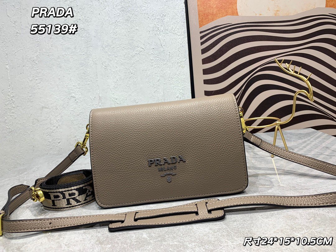 Hot new clamshell ???? PRADA /PRADA- clamshell sales champion, ???? upgraded large version ????, equipped with two straps ????, 2023 four seasons suitable fashion shoulder bag ???? striped strap leather handbag ???? the original deer cowhide ???????? ????, double layer [rose] main selling six colors
