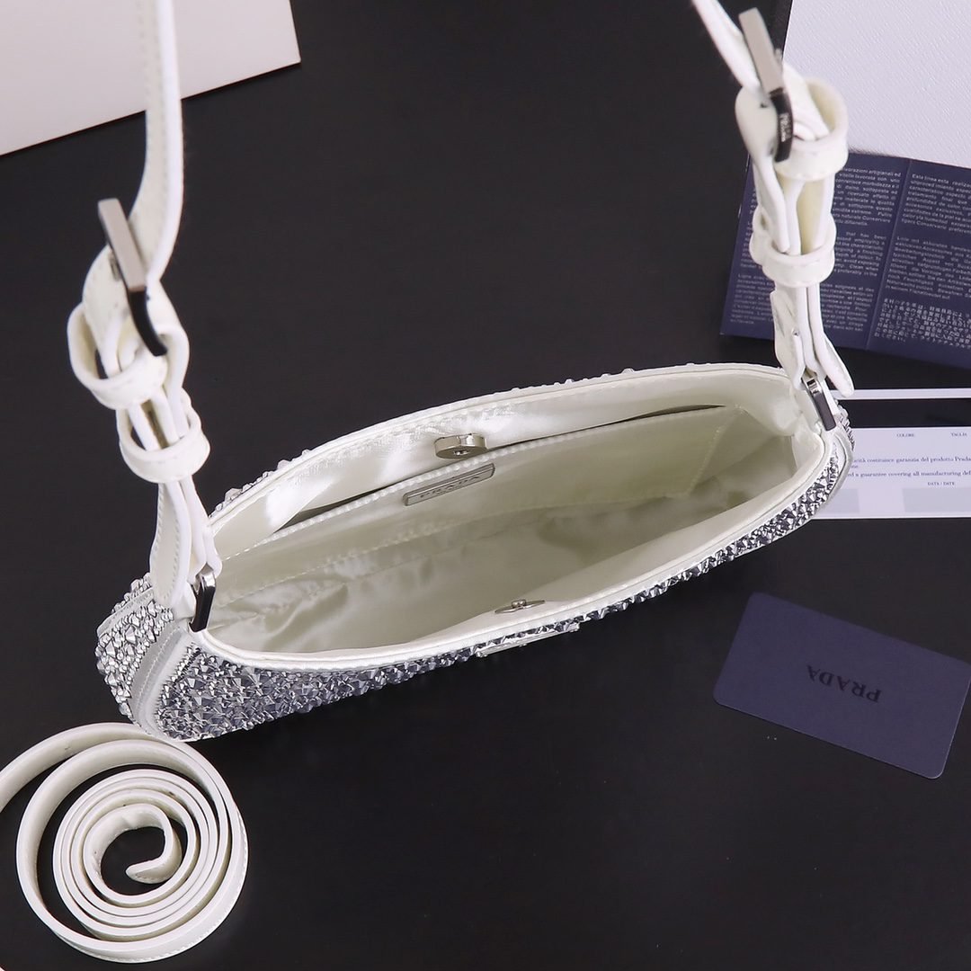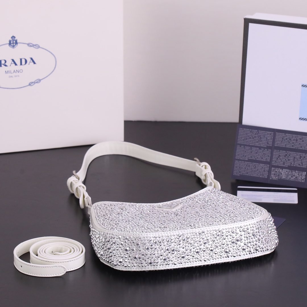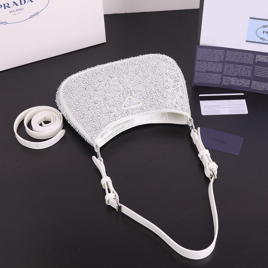 Model 8801, size 22 ’18’ 5. Prada Ss21 new sparkling rhinester full of diamond Hobo bag Wow click! The whole bag is studded with flash diamonds Prada Hobo bag under the light BlingBling flash diamonds, flash to the eye! Too beautiful ah believe me, carrying it to shop at night is very suction-suction-ball, head rate is particularly high where to get all kinds of praise this flash diamond bag is also particularly good to wear, can be fairy can be cool, what occasions are suitable, especially to participate in Prada with the dress, simply beautiful wow