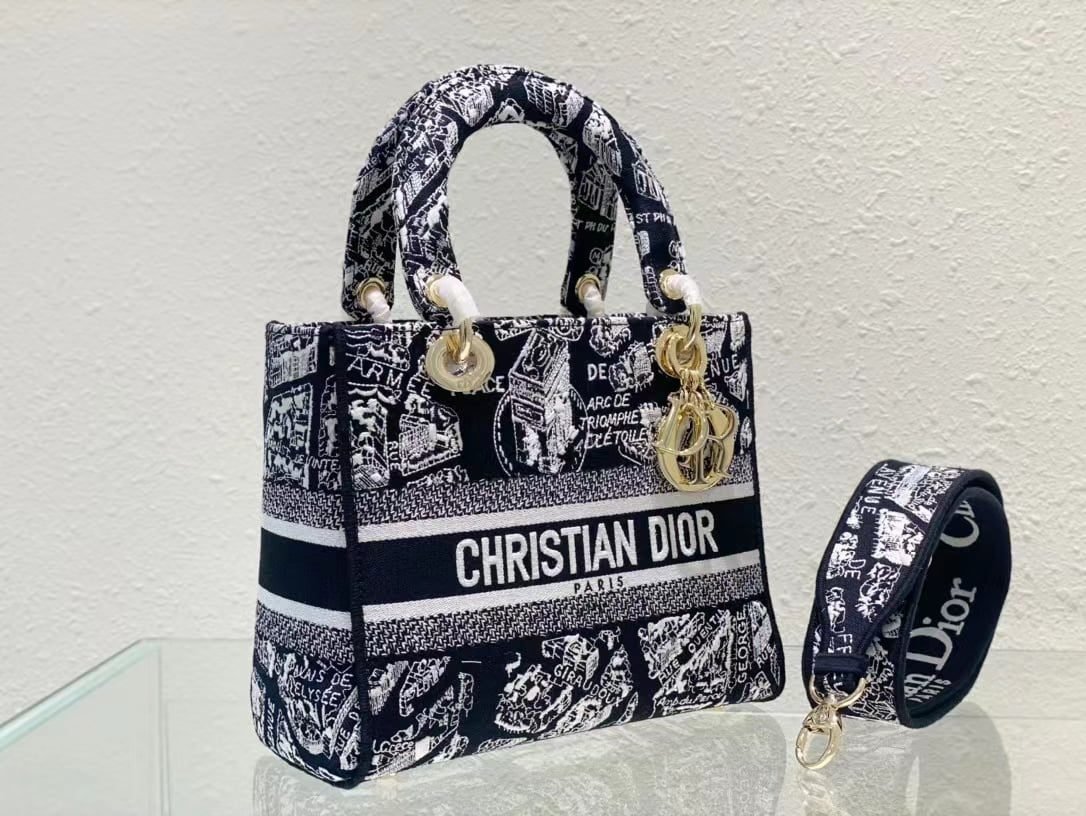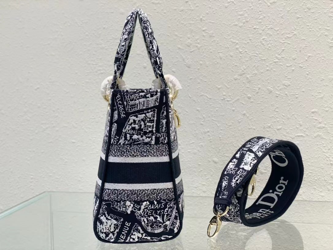 lady lite手袋将经典优雅的气质与时尚风格融为一体。全身绣有本季经典的黑白平纹系图案,从 Dior 的档案中汲取灵感,向 Dior 历史悠久的蒙田大道地址致敬。正面饰有 Christian Diorparis 标志,搭配质感浅金色金属 dior 装饰,为精致廓形增添一丝灵动气息。中号款式,搭配可拆卸双面刺绣宽肩带,可手提或斜挎。尺寸24厘米