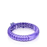 TOUS Virtual Garden ring in sterling silver with a purple finish and two 2 mm chrome diopsides, simulating the structure of a caterpillar. Ring thickness: 3 mm. Ring width: 5.5 mm.