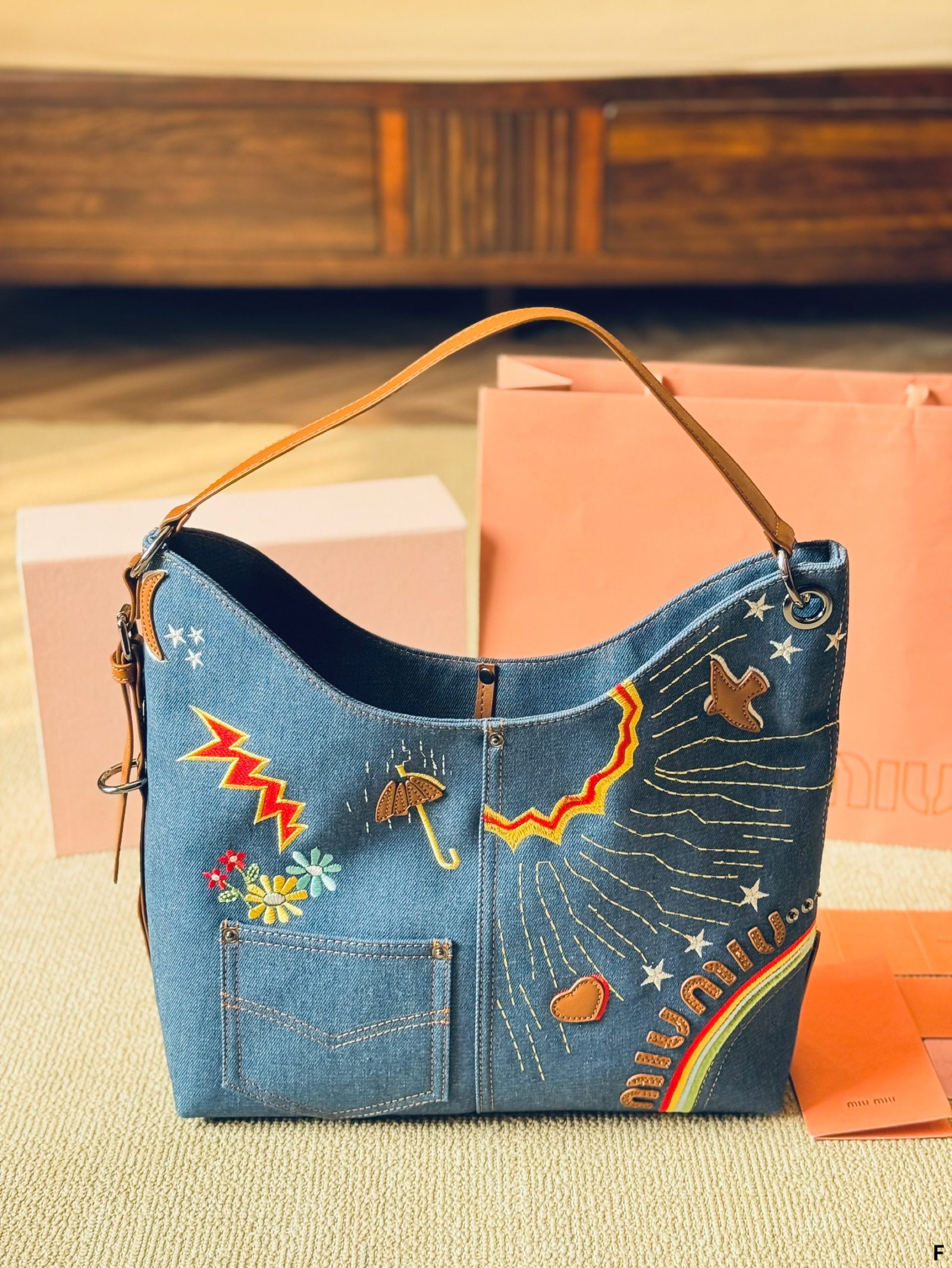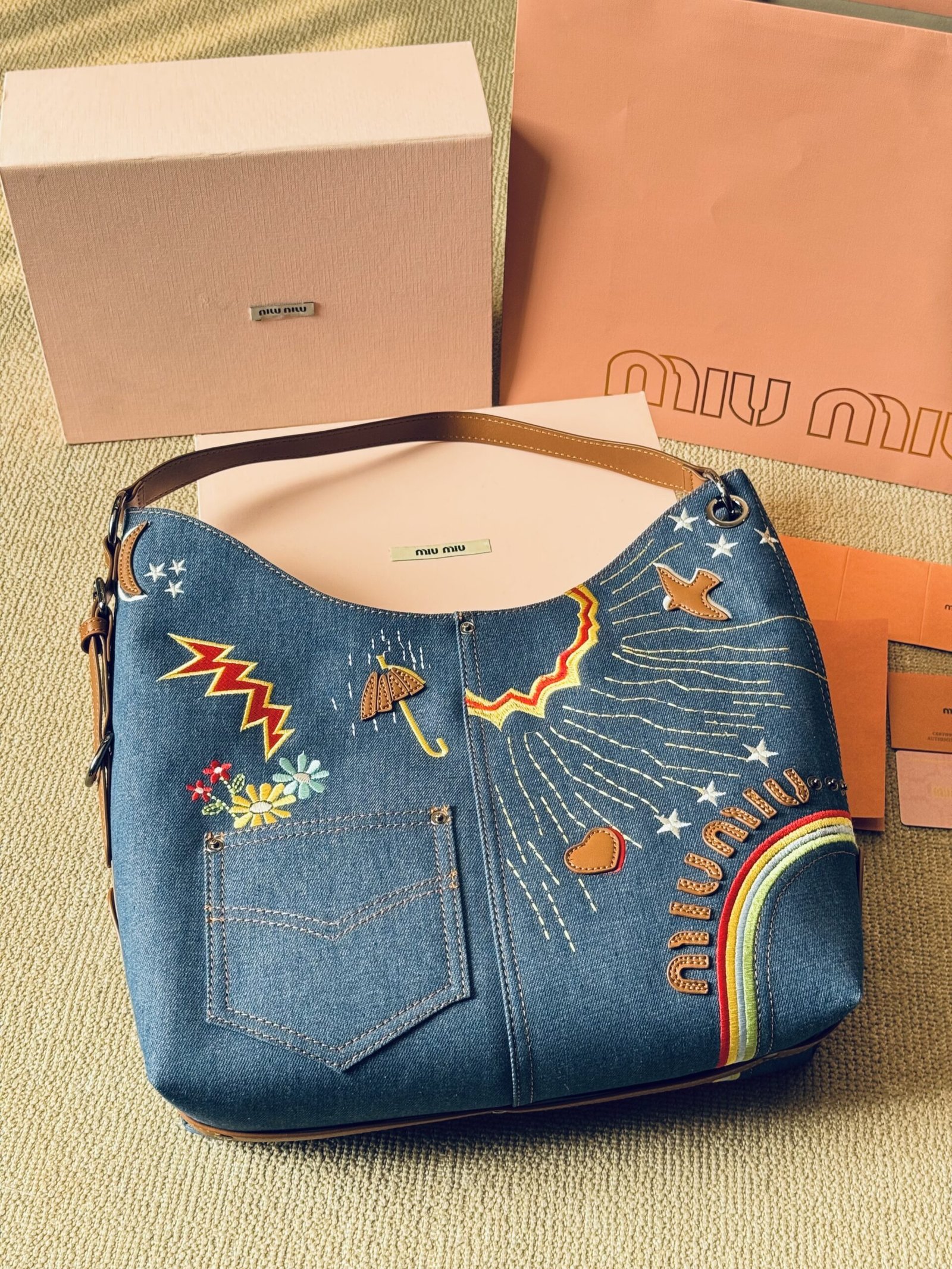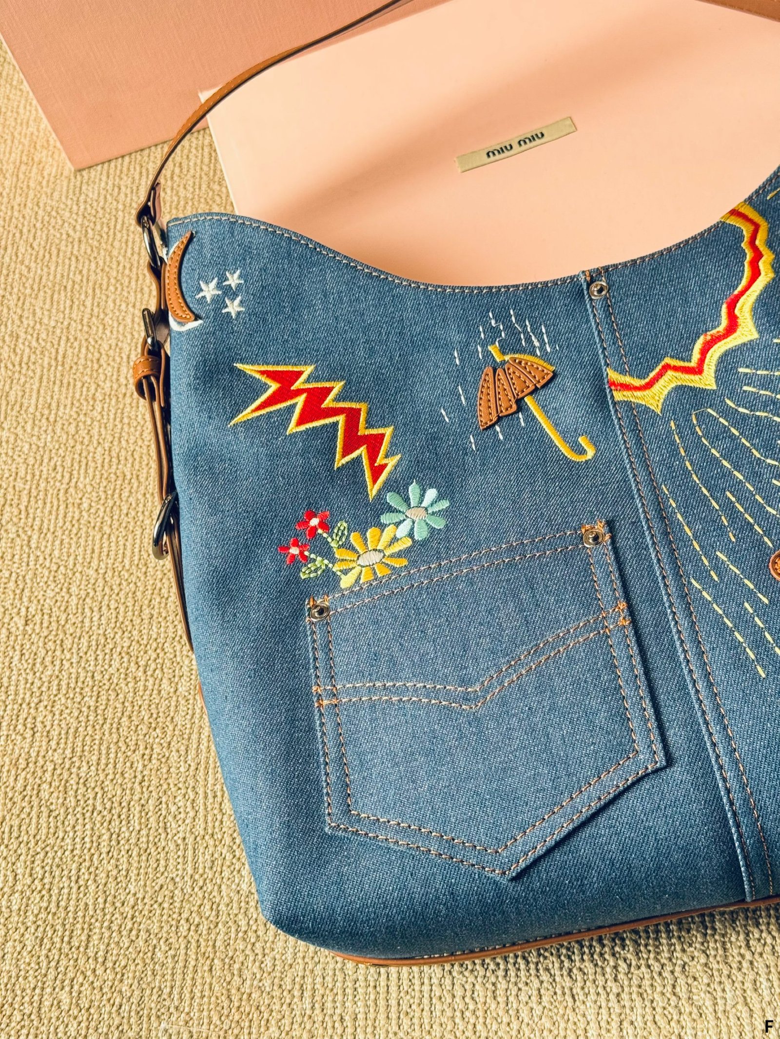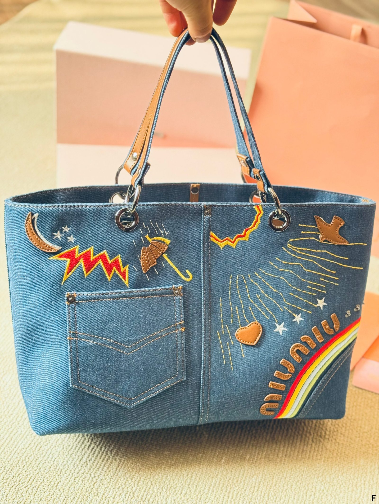 Be the first to review “Rainbow embroidery with denim handbag tote bag for men and women” Cancel reply