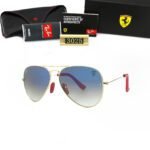 The Ray Ban AVITOR Ferrari series of sunglasses adopts an original pilot style and is newly crafted with lightweight and dynamic materials, creating an impressive Ferrari team carbon fiber pilot style. The mirror legs made of carbon fiber ensure a comfortable fit, while the rubber inserts and nose rest on the inner side of the legs provide additional comfort.