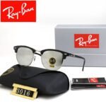 Ray Ban Club Master sunglasses with black silver rimmed frames and gray lenses, square and circular frames, suitable for both men and women