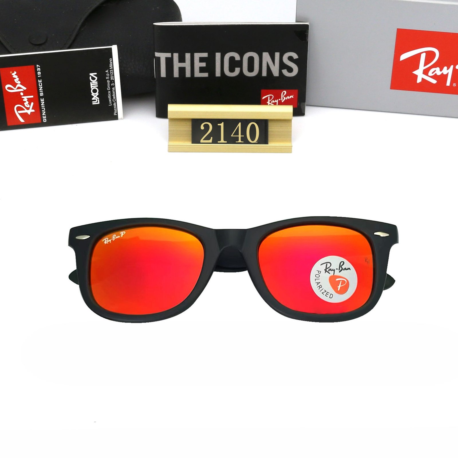 Ray Ban red film reflective lenses, square sunglasses with strong UV protection, unisex style