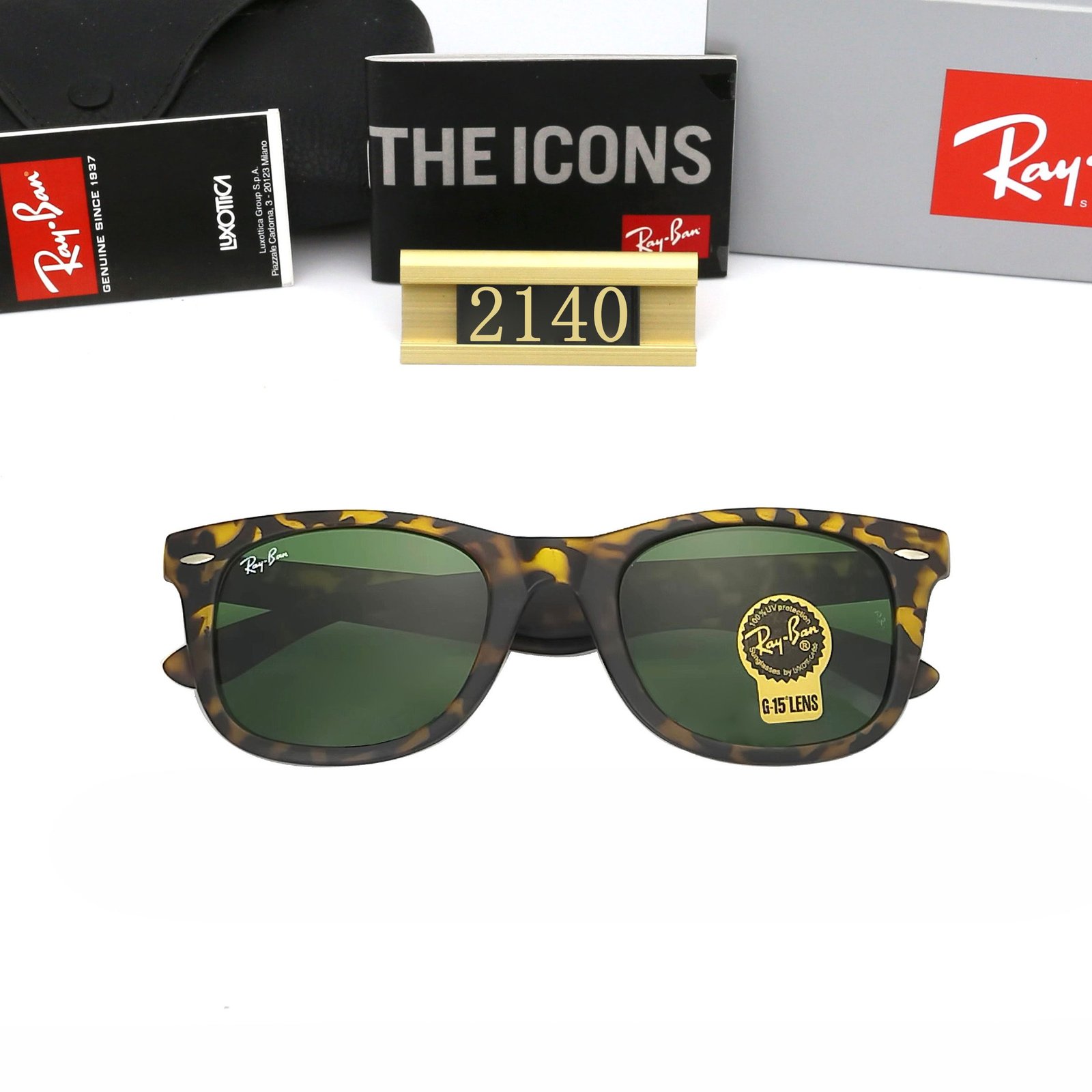 Home SUNGLASSES Sunglasses-Ray Ban Ray Ban retro leopard print and green lens square sunglasses for both men and women