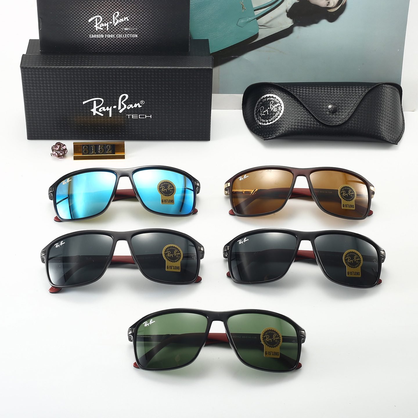 Ray – Ban Square Sunglasses (Model 8152): Diverse Lens Colors, Classic Style