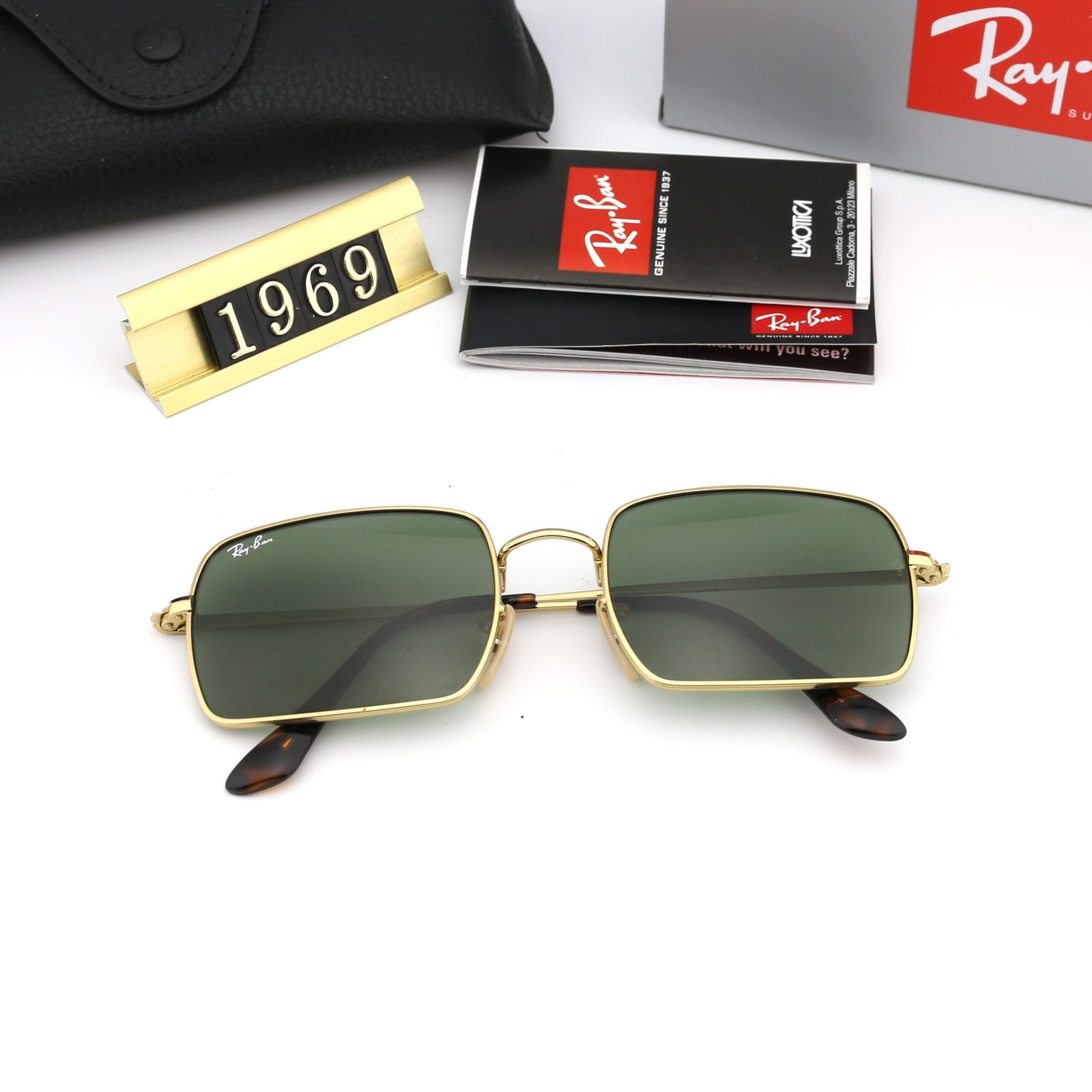 Ray Ban1969 Black and Green Lenses Rectangular Sunglasses Unisex