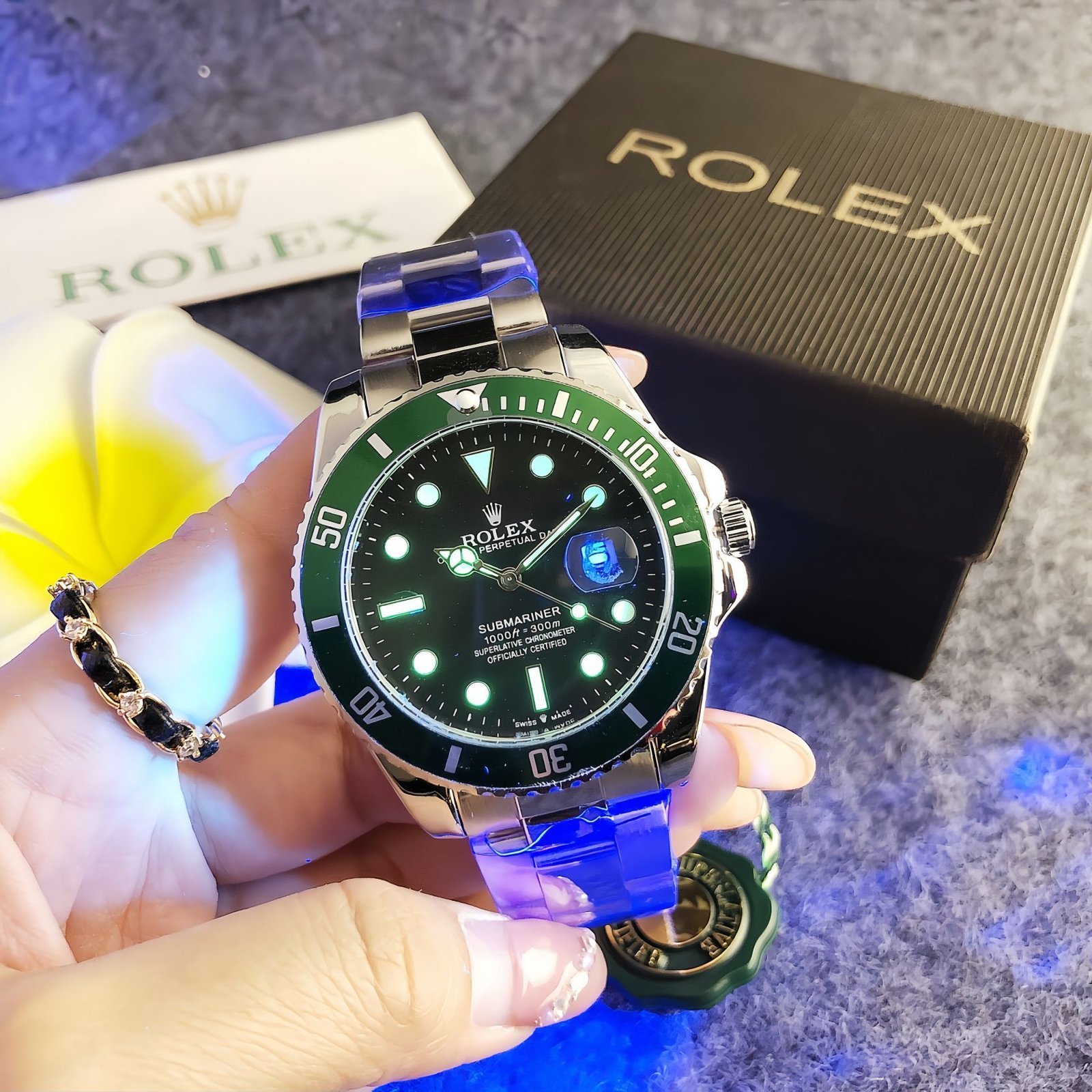 Rolex 2934S series watches embody the brand’s iconic Submariner heritage, featuring distinctive ceramic bezels in vibrant hues like green, blue, and black, stainless steel bracelets, and the signature Submariner detailing. With Rolex’s legacy of precision engineering and timeless design, these timepieces exude rugged sophistication. Perfect for those who appreciate a blend of classic dive watch style and colorful versatility, they make a bold statement suitable for both aquatic adventures and everyday stylish ensembles.