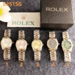 Rolex 8251SG series watches embody opulent sophistication, featuring round dials, two-tone metal bracelets, and eye-catching gemstone-encrusted bezels in vibrant hues. With Rolex’s signature attention to detail and legacy of horological excellence, these timepieces exude timeless glamour. Perfect for those who seek a blend of iconic luxury and colorful artistry, they make a stunning statement suitable for both high-end occasions and stylish daily wear.