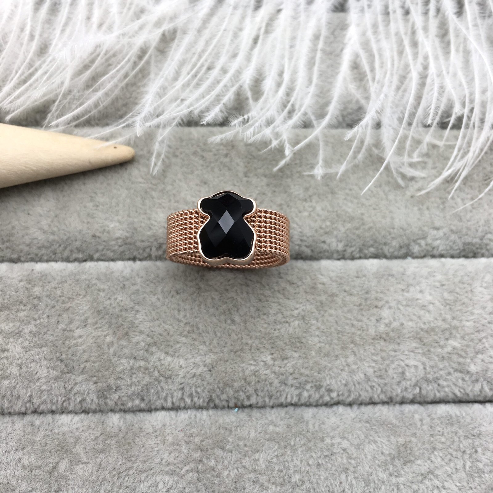 Be the first to review “Rose IP Steel TOUS Mesh Color Ring with faceted Onyx Bear motif” Cancel reply
