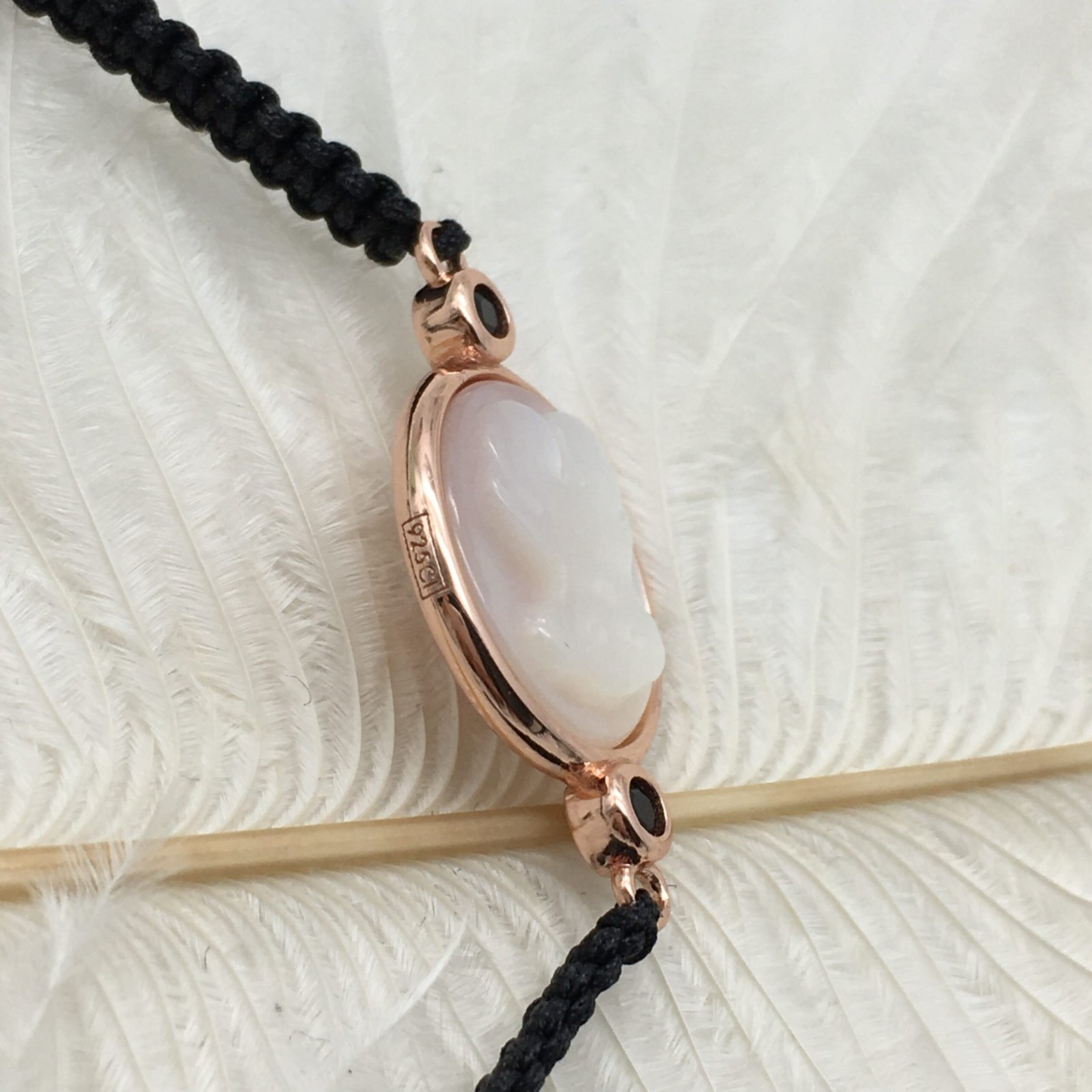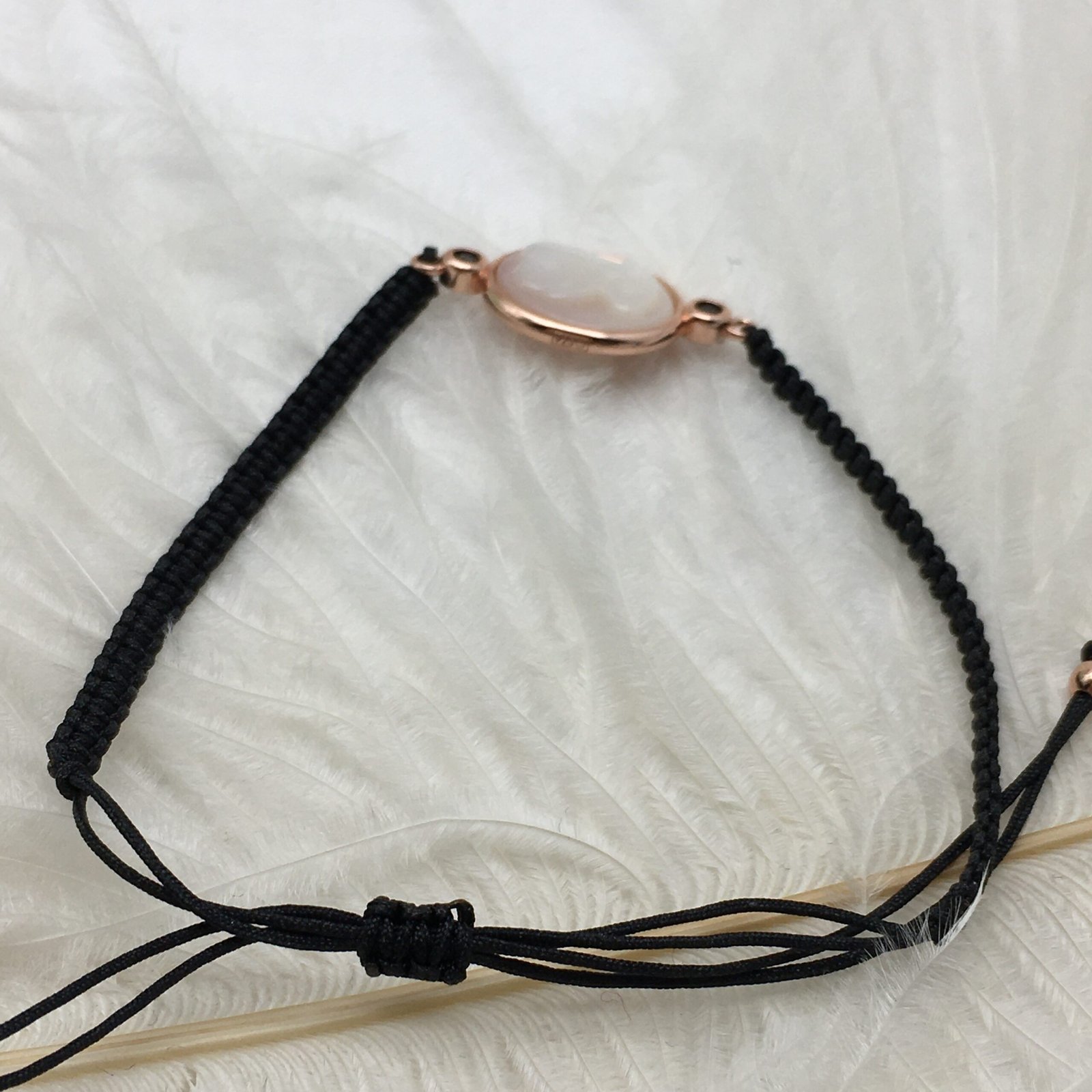 Rose Vermeil Silver Camee Bracelet with black Cord, Mother-of-Pearl and Spinel