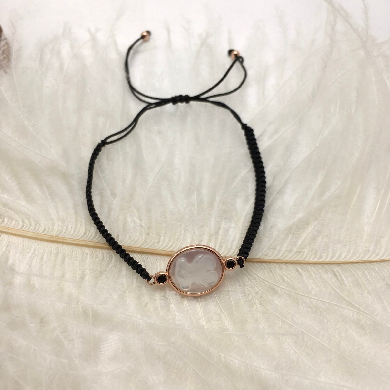Be the first to review “Rose Vermeil Silver Camee Bracelet with black Cord, Mother-of-Pearl and Spinel” Cancel reply
