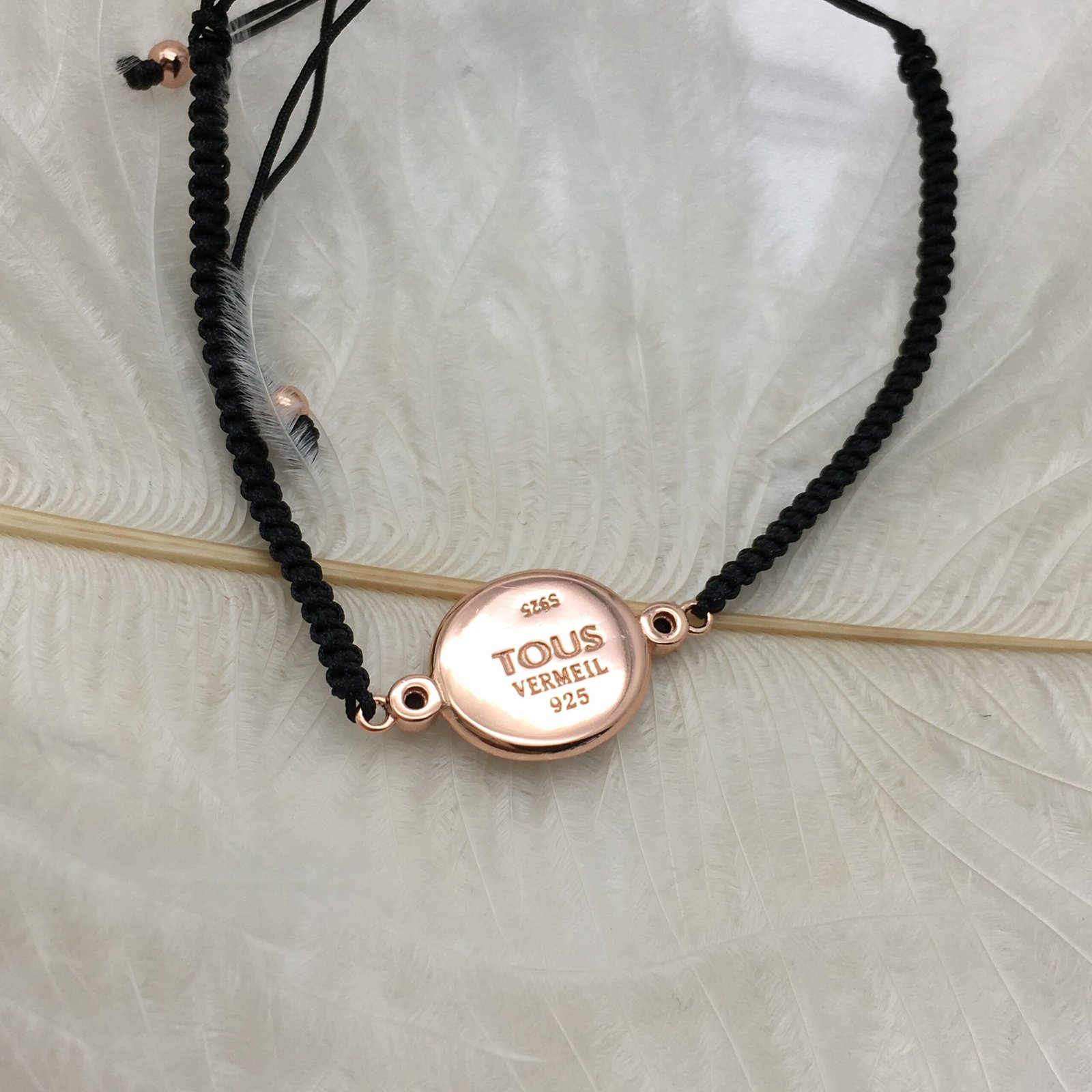 Home JEWELRY TOUS TOUS bracelet Rose Vermeil Silver Camee Bracelet with black Cord, Mother-of-Pearl and Spinel