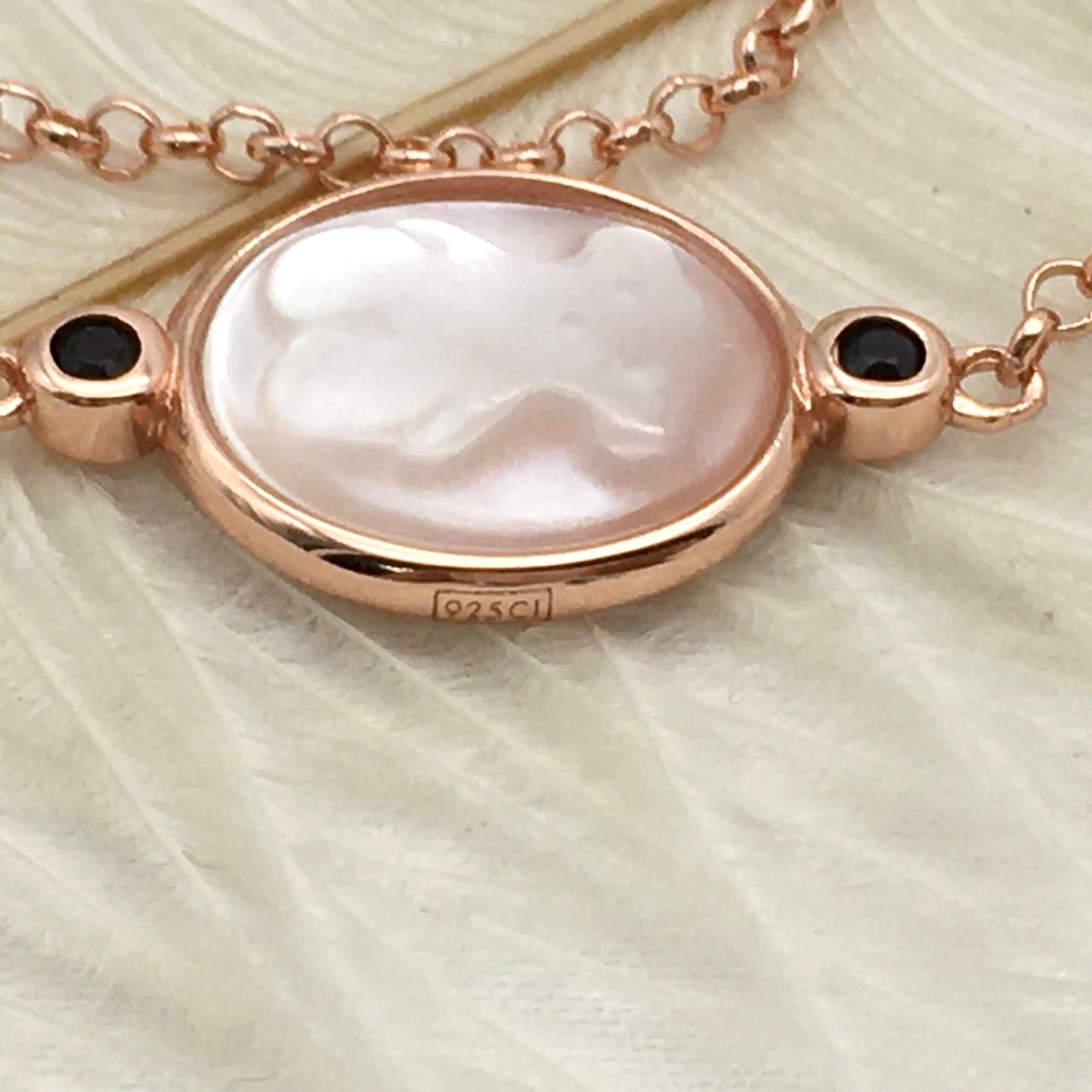Be the first to review “Rose Vermeil Silver Camee Bracelet with Mother-of-Pearl and Spinel” Cancel reply