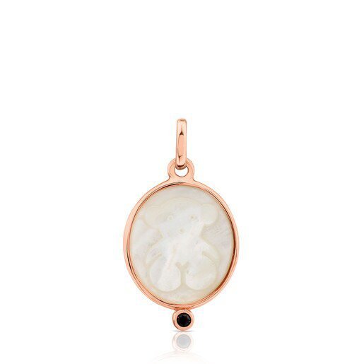 Rose Vermeil Silver Camee Pendant with Mother-of-Pearl and Spinel