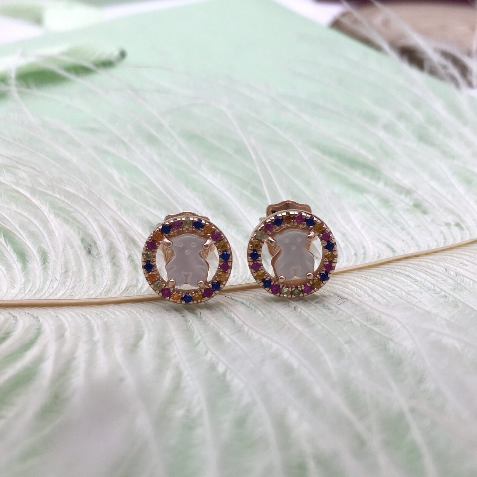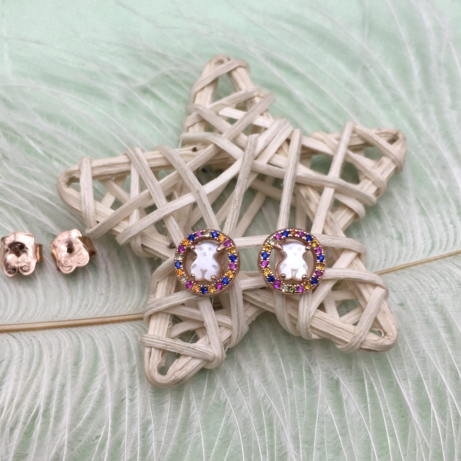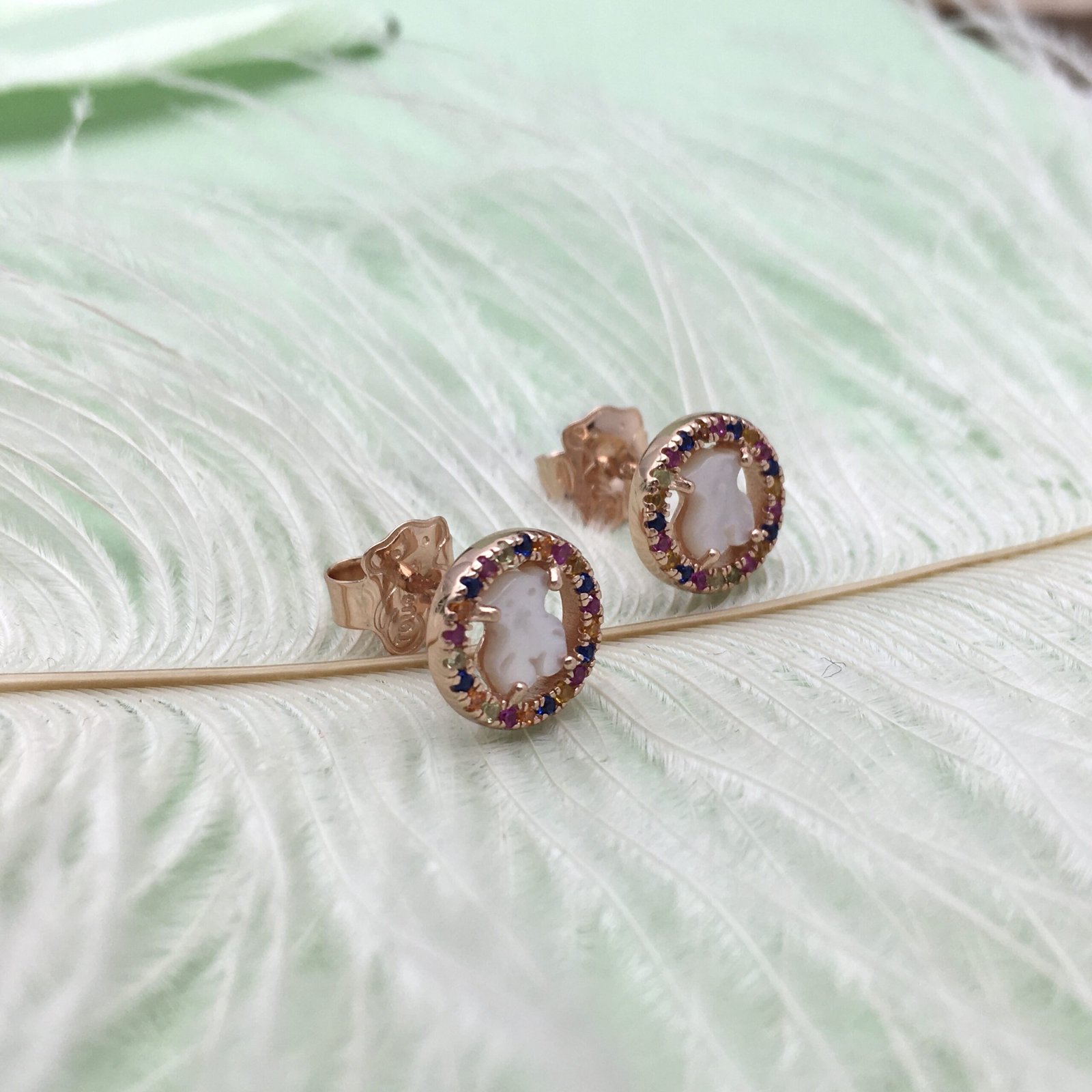Rose Vermeil Silver Camille Earrings with Mother-of-Pearl and multicolored Sapphire
