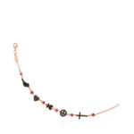 TOUS Motif bracelet in rose vermeil silver with spinels, ruby and onyx. Length: 17.5 cm. Vermeil: Sterling silver plated with a layer of 18kt rose gold.