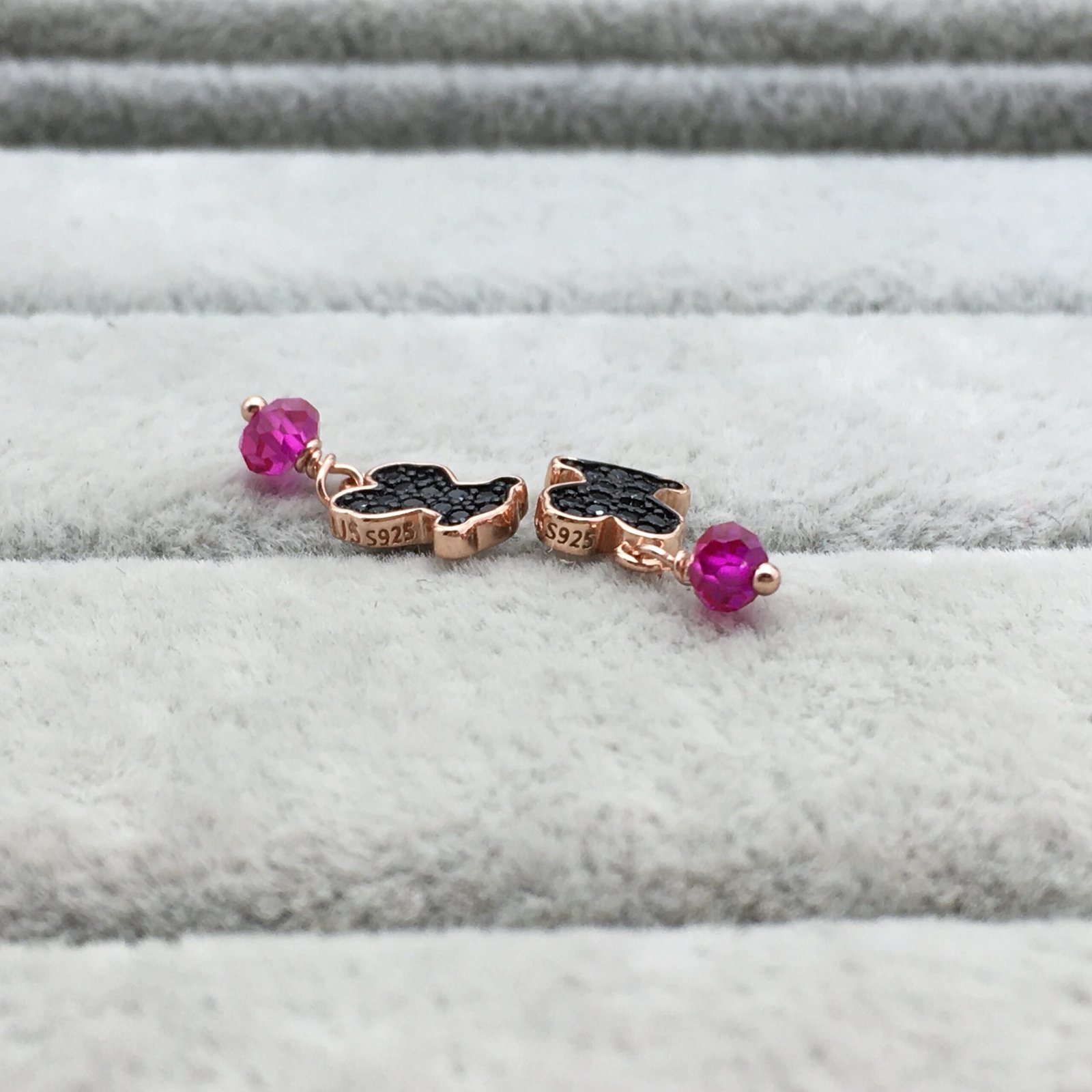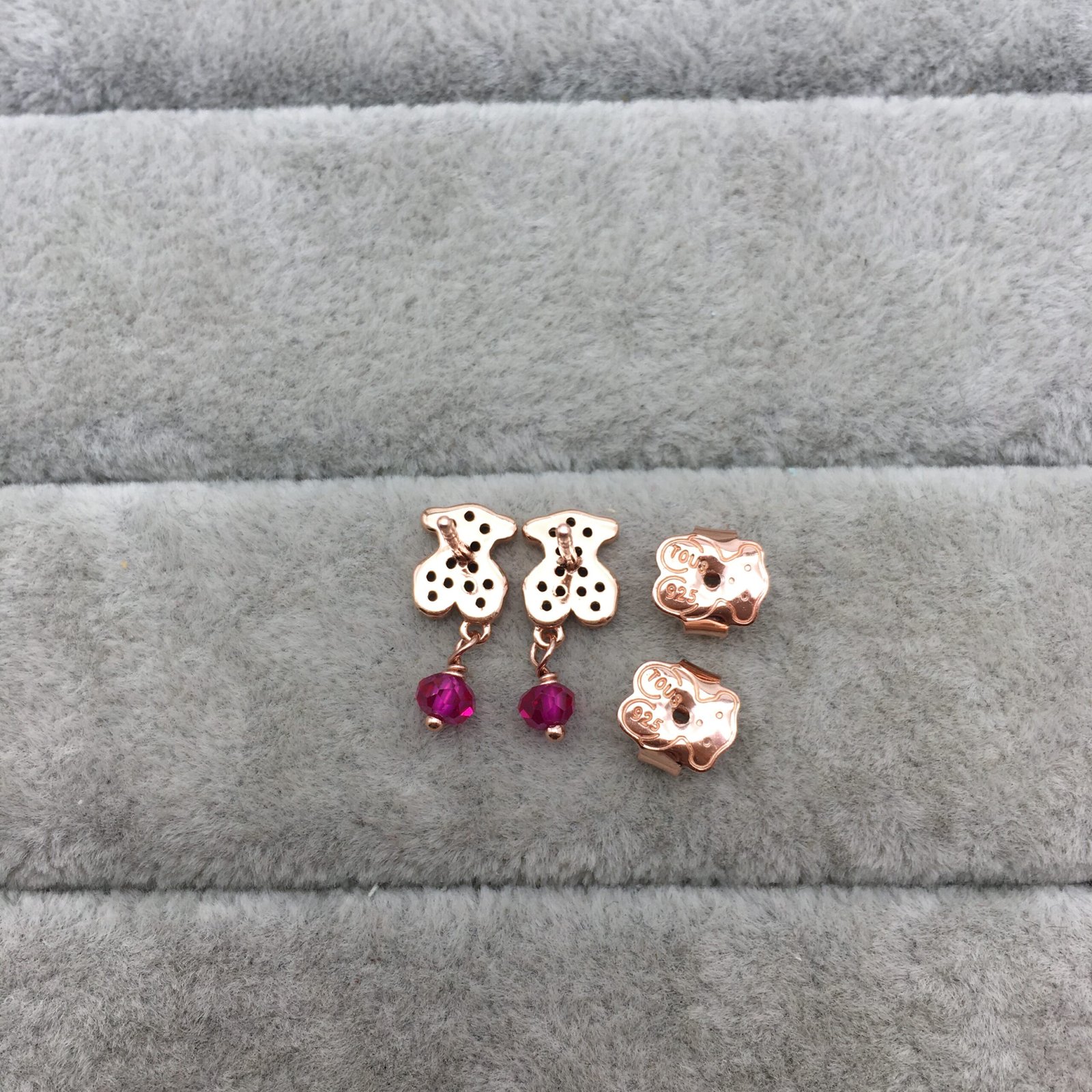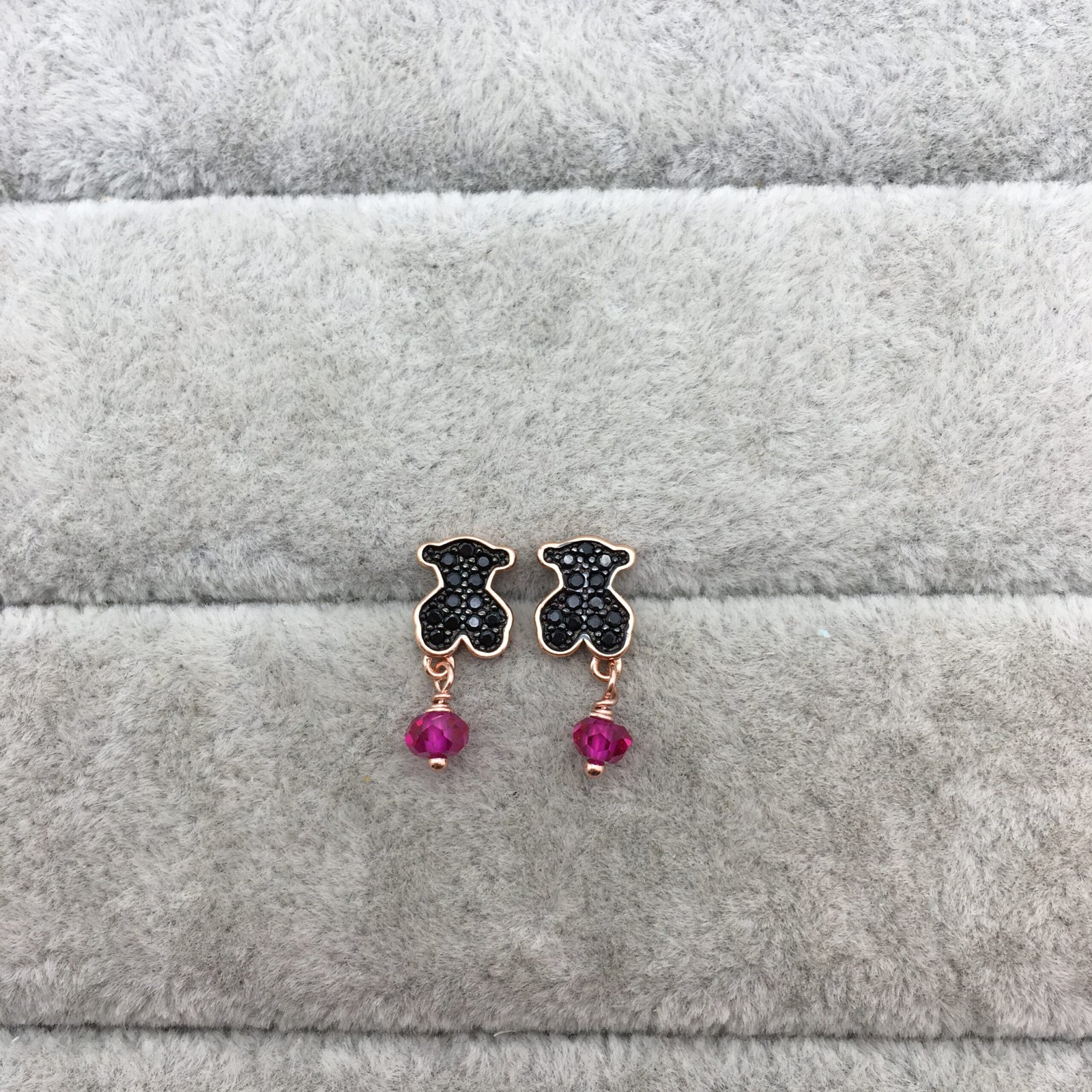 TOUS Motif earrings in rose vermeil silver with spinel and treated ruby. Push back. Size: 0.9 cm. Vermeil: Sterling silver plated with a layer of 18kt rose gold.