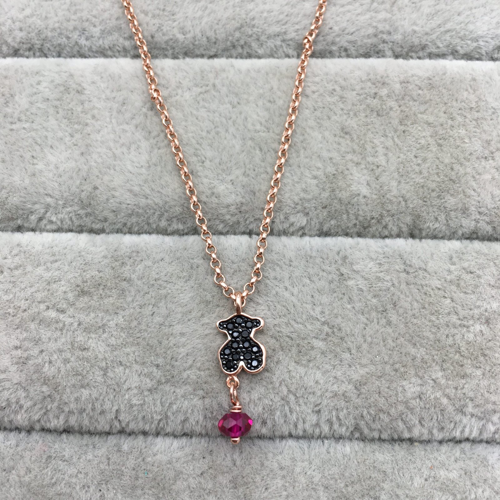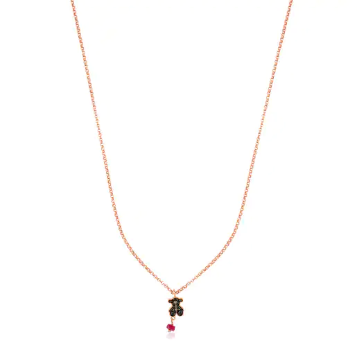 TOUS Motif necklace in rose vermeil silver, spinel and treated ruby. Size: 0.9 cm. Length: 45 cm. Vermeil: Sterling silver plated with a layer of 18kt rose gold.