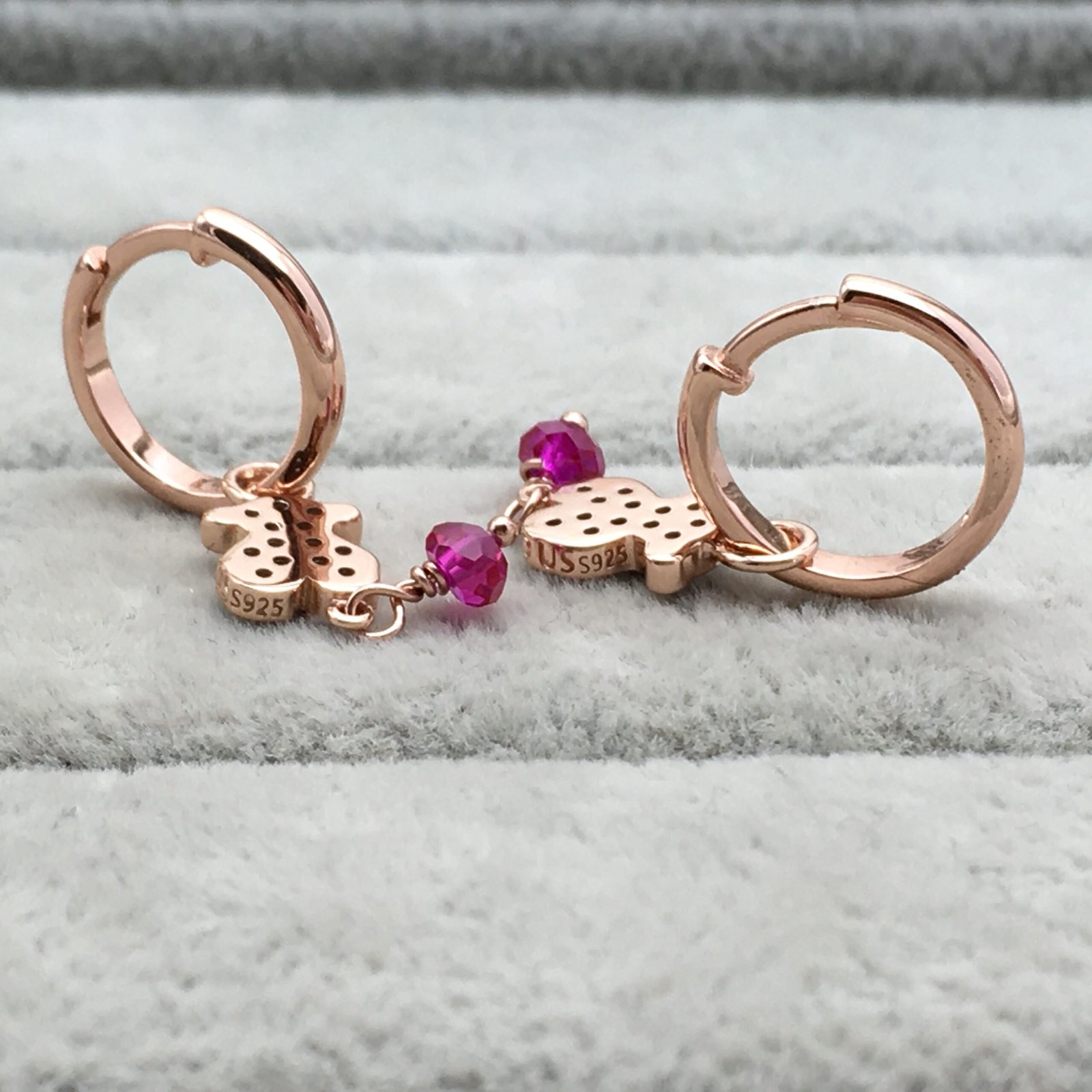 Rose Vermeil Silver TOUS Motif Earrings with Spinel and Ruby and Bear motif