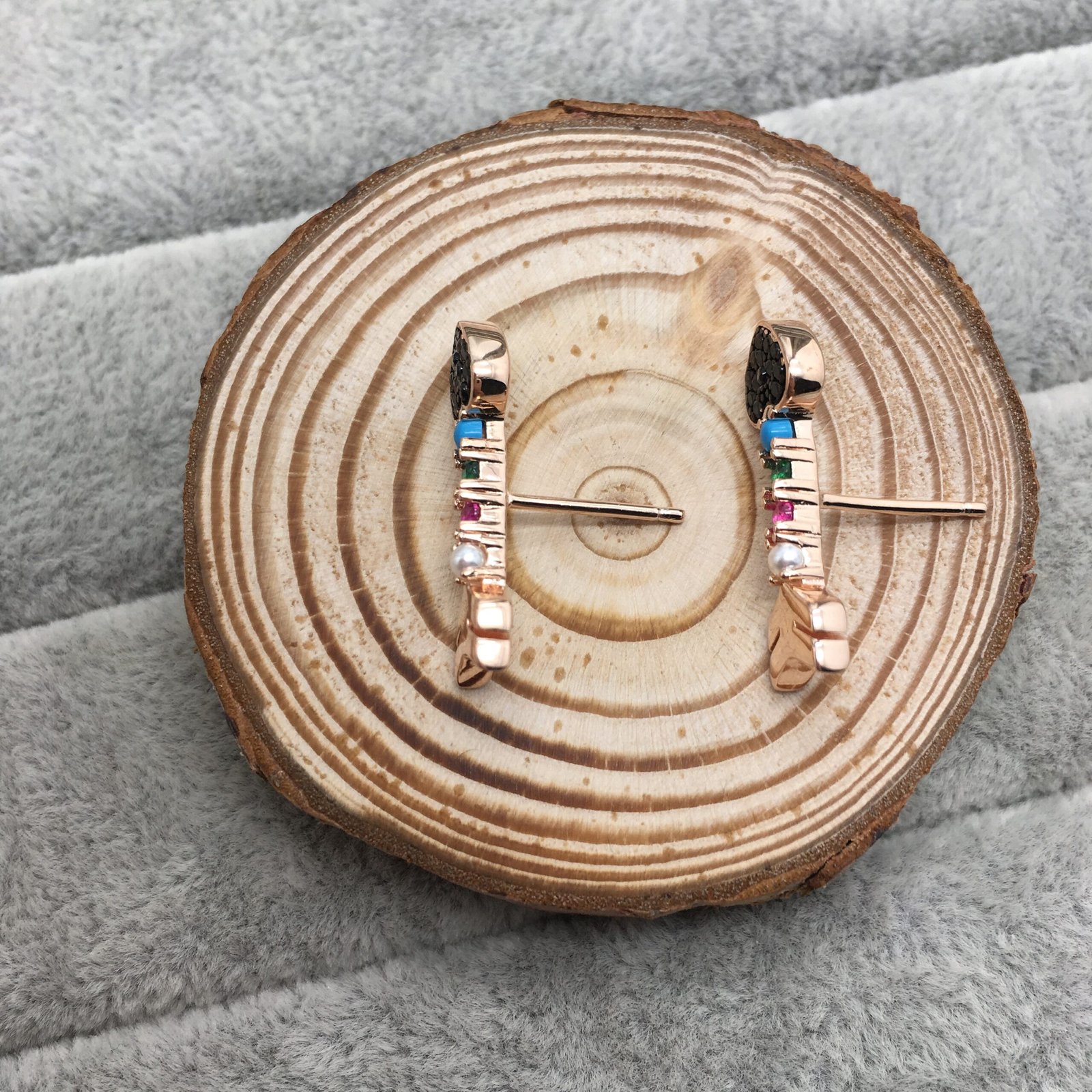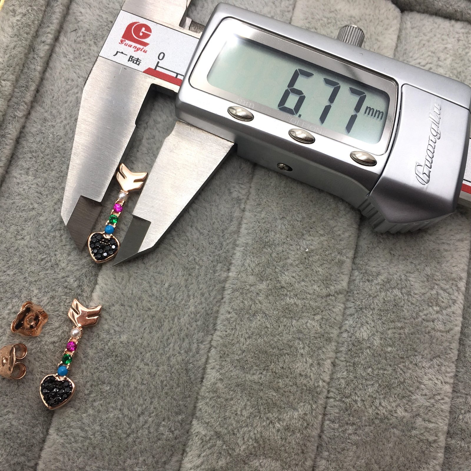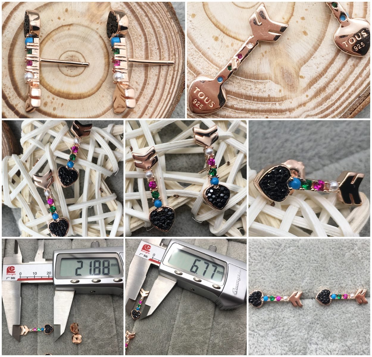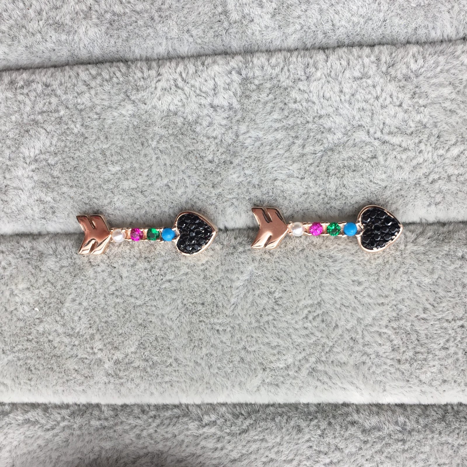 TOUS San Valentín arrow Earrings in rose silver vermeil with spinels, turquoise, tsavorite, ruby and pearl. Push back. Earrings size: 2.2 cm.