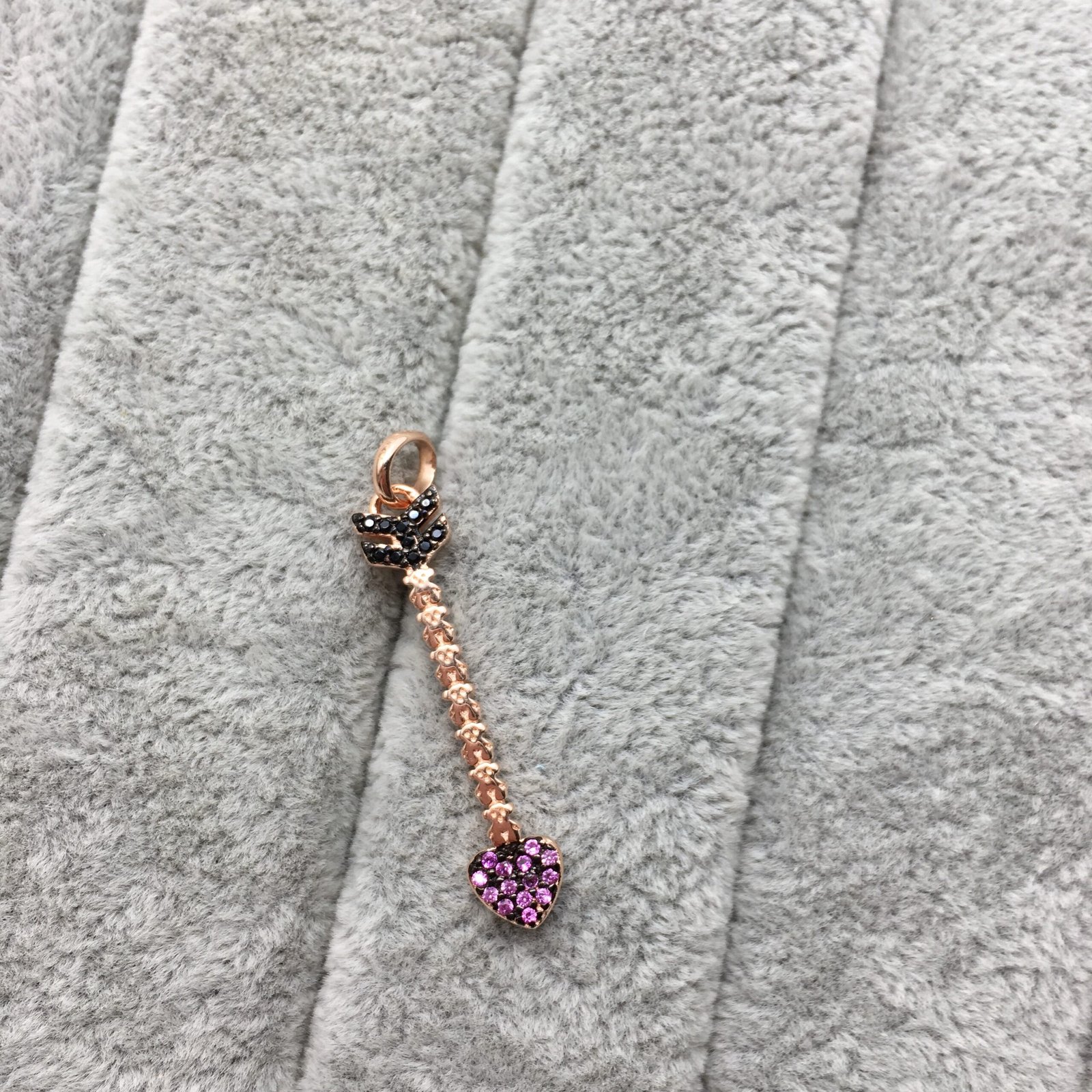 San Valentín arrow Pendant in Rose Silver Vermeil with Ruby and Spinel