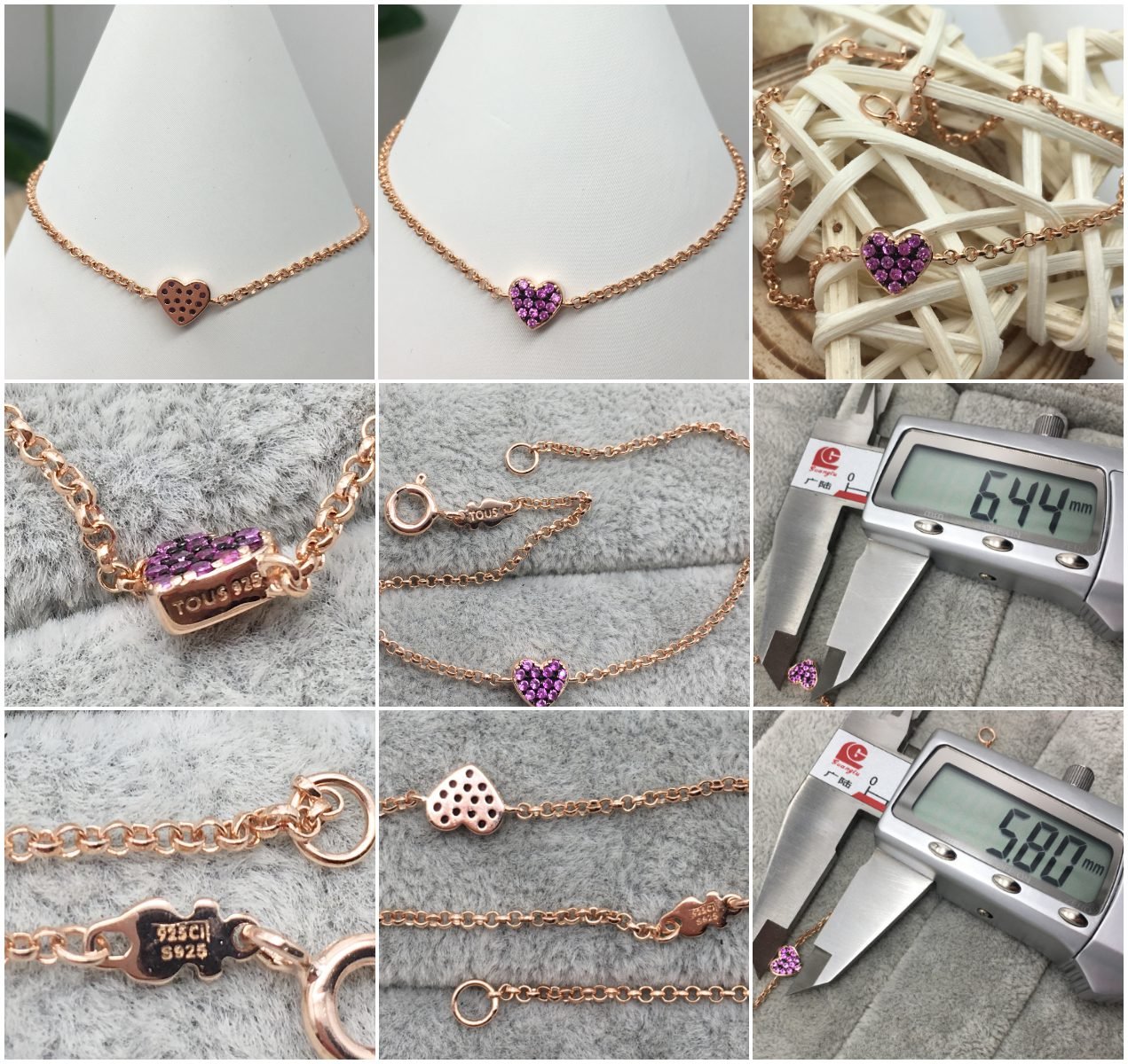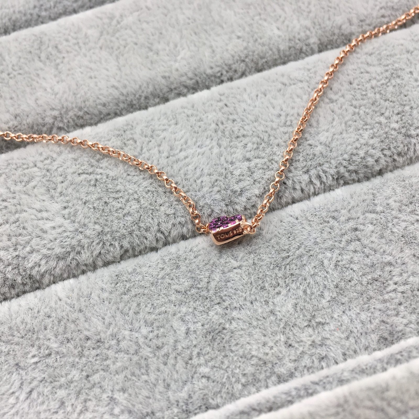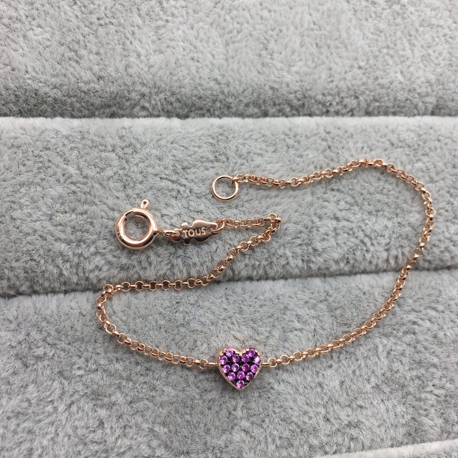TOUS San Valentín heart Bracelet in rose silver vermeil with rubies. Heart size: 0.6 cm. Length: 17.5 cm.