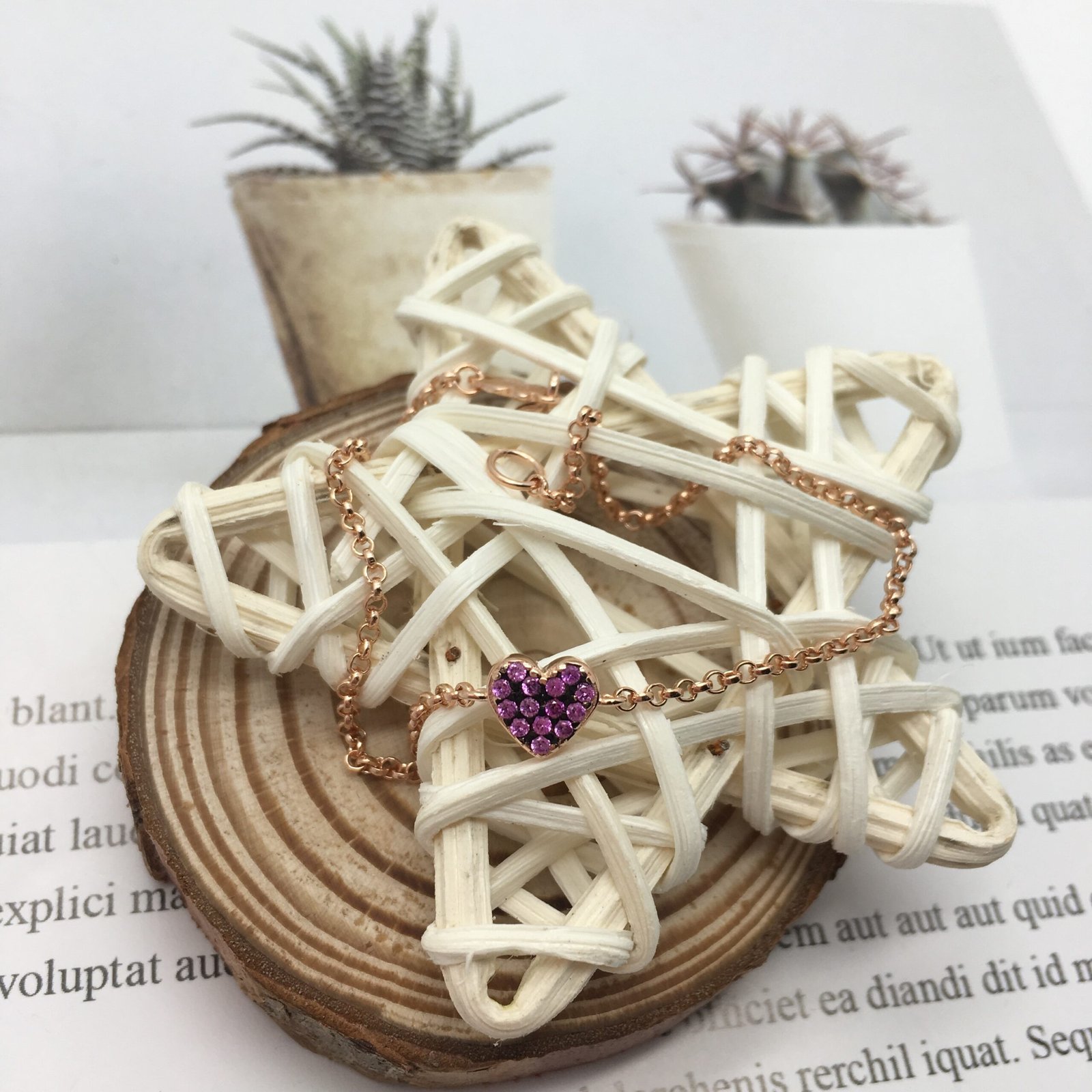 San Valentín heart Bracelet in Rose Silver Vermeil with Ruby