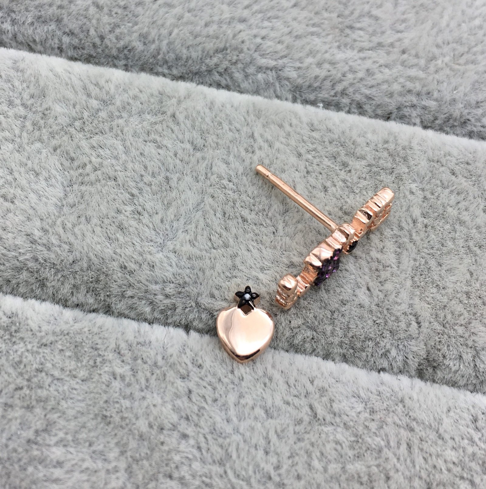 San Valentín heart & love Earrings in Rose Silver Vermeil with Ruby and Spinel
