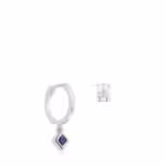TOUS Basic Colors short/long hoop earrings in sterling silver with bear motif and faceted square iolite. Gemstone size: 2.5 mm. Size of hoop: 10 mm. Motif size: 5 mm. Push back.