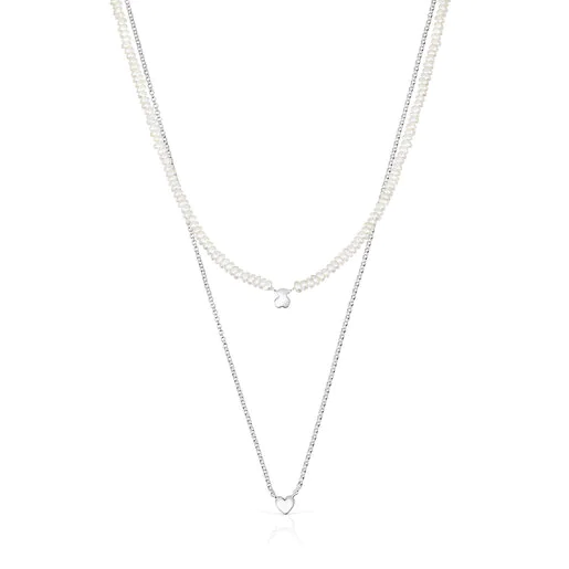 Silver and cultured pearls Mini Icons heart and bear Necklace set