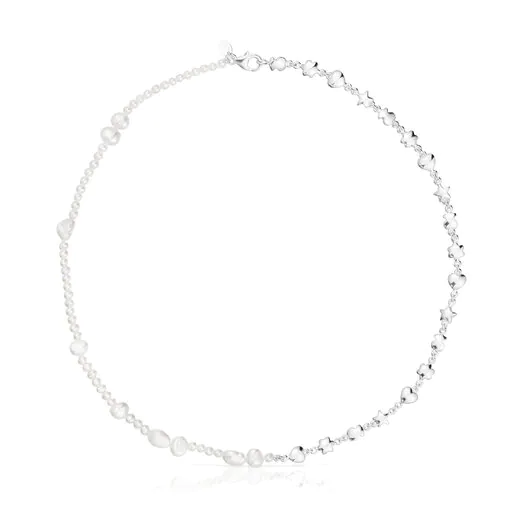 Play mix-and-match with this necklace in sterling silver and pearls from the Mini Icons collection: create different looks with our icons in their most delicate expression and join the layering trend by combining different necklaces in a single look.
