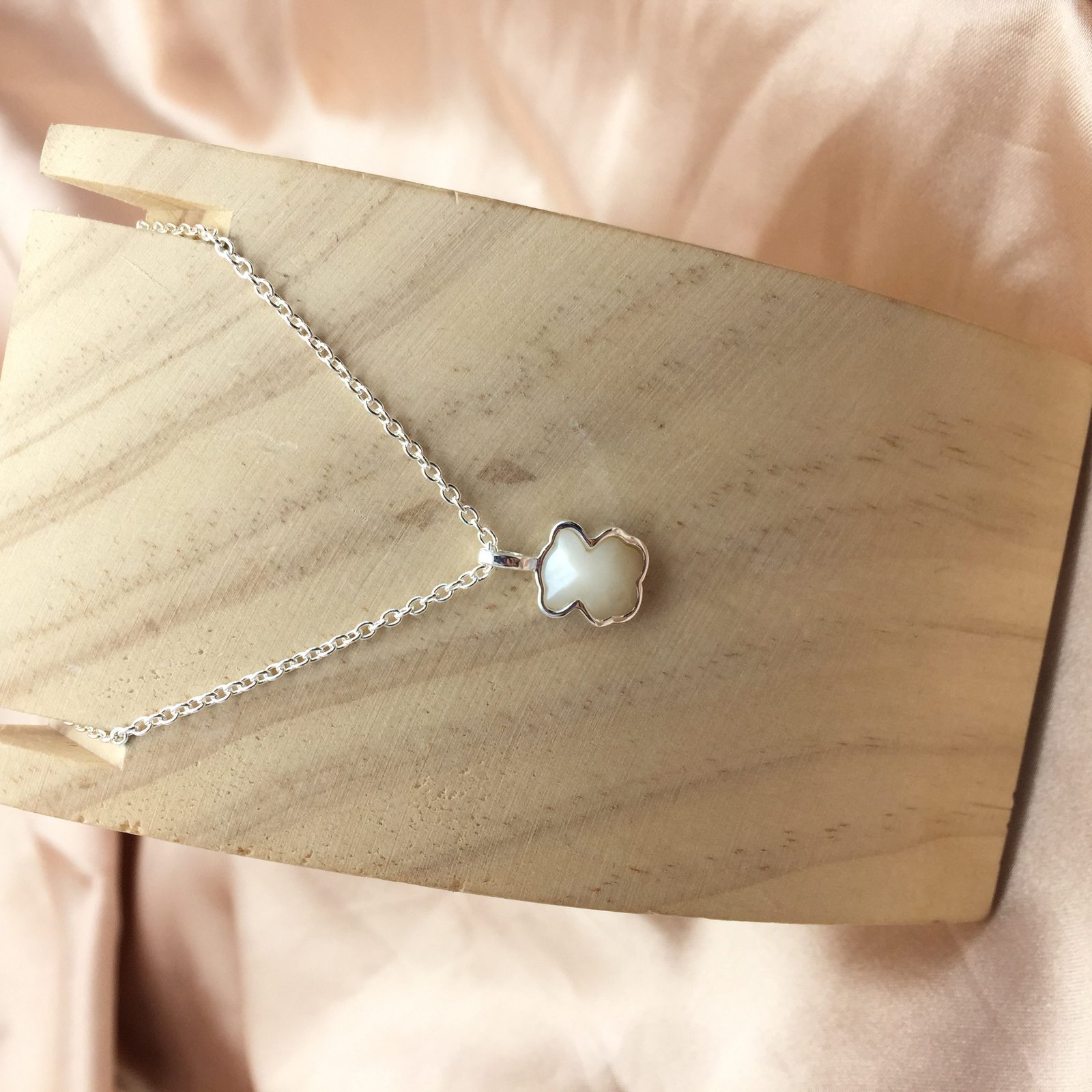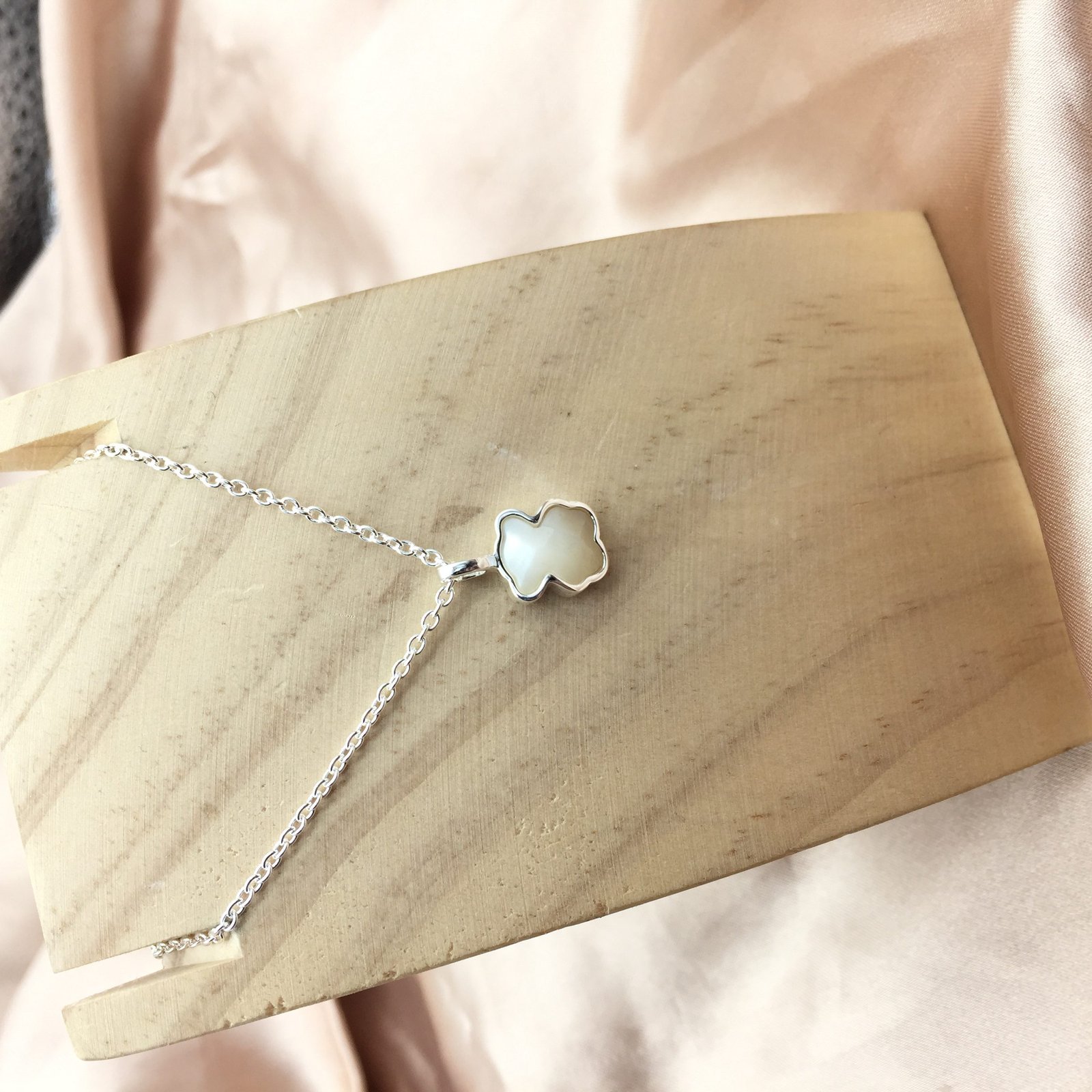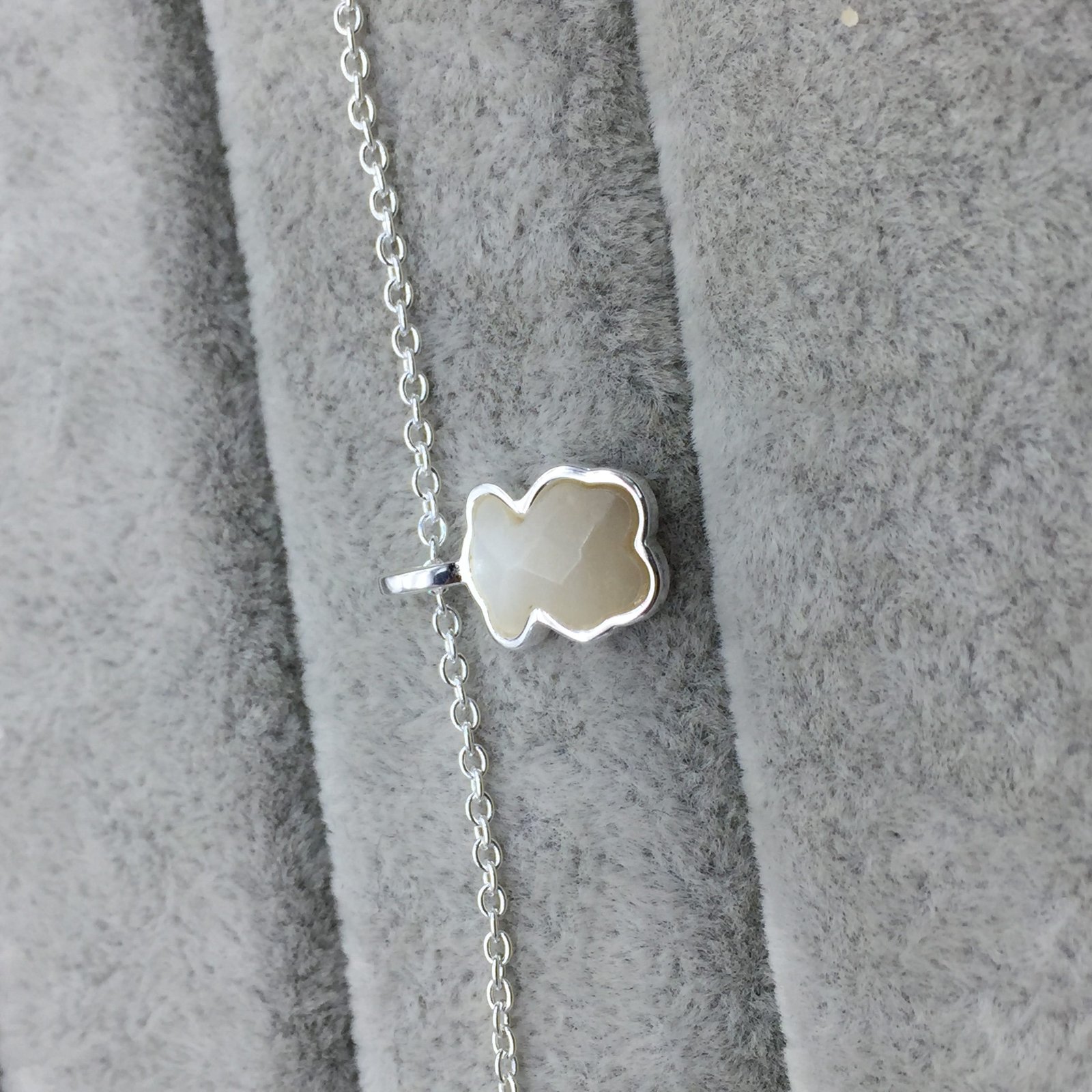 An elegant, unique, and magical neckline. It only shows this discreet and simple silver and faceted mother of pearl chain. And your look is exactly what you wanted. Special. Delicate.