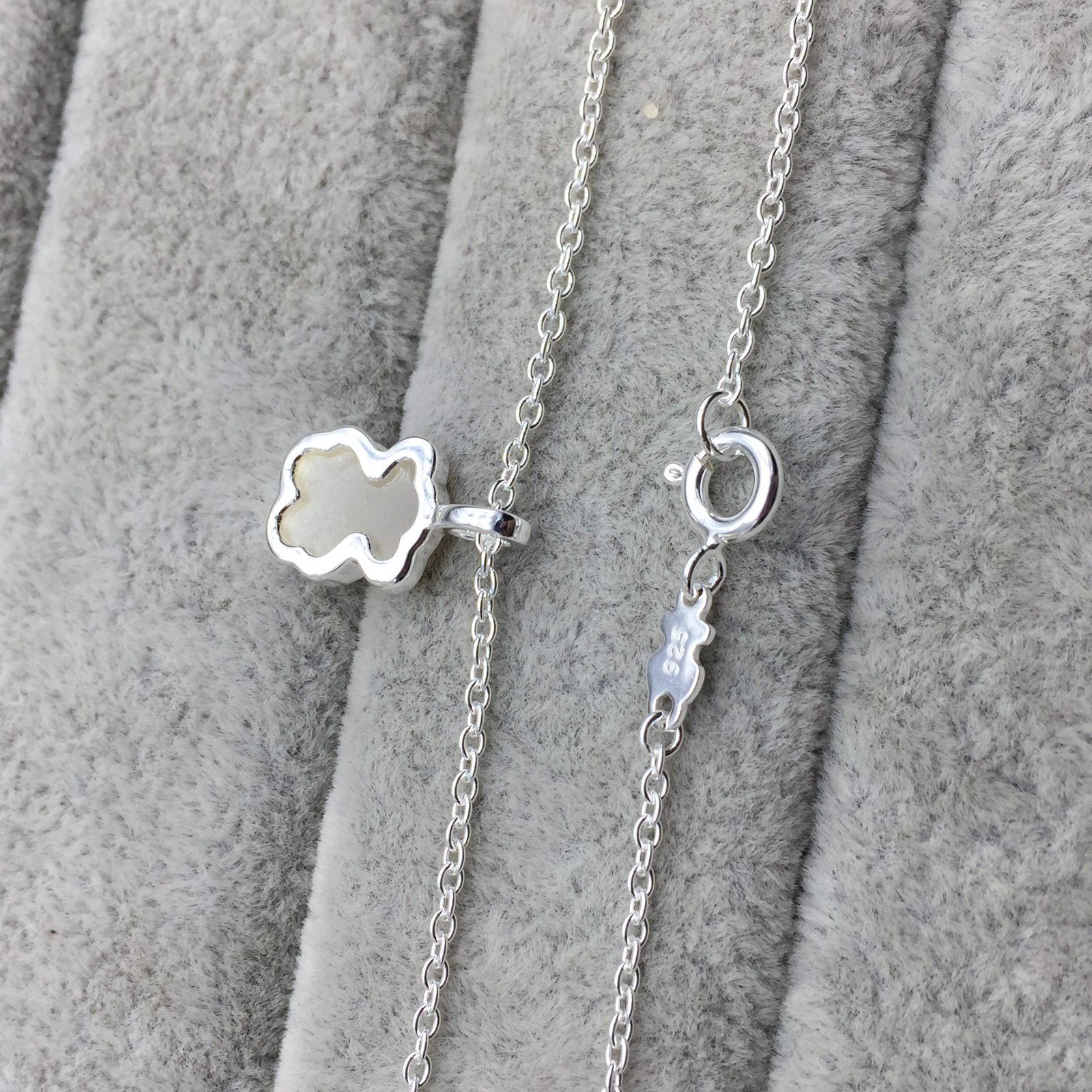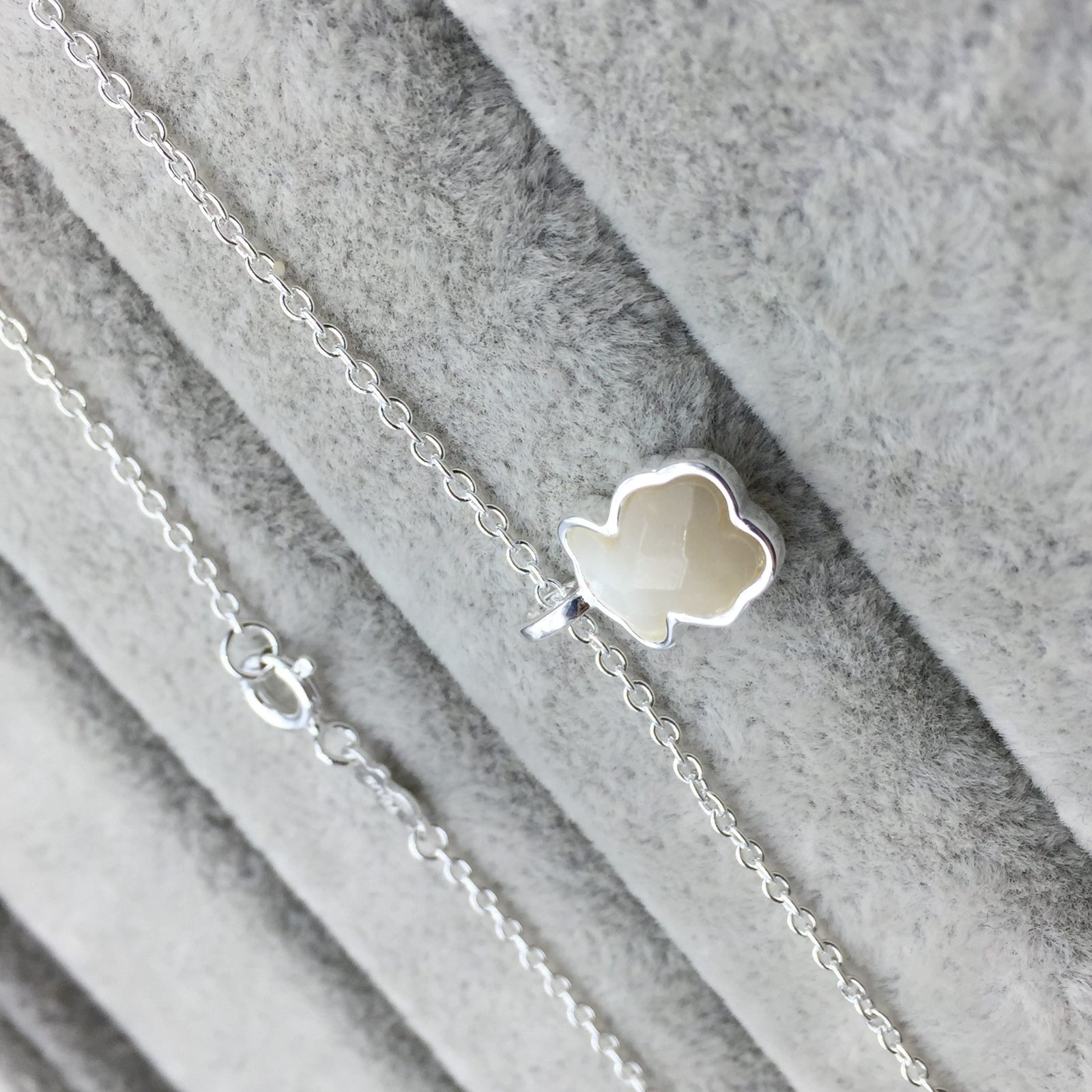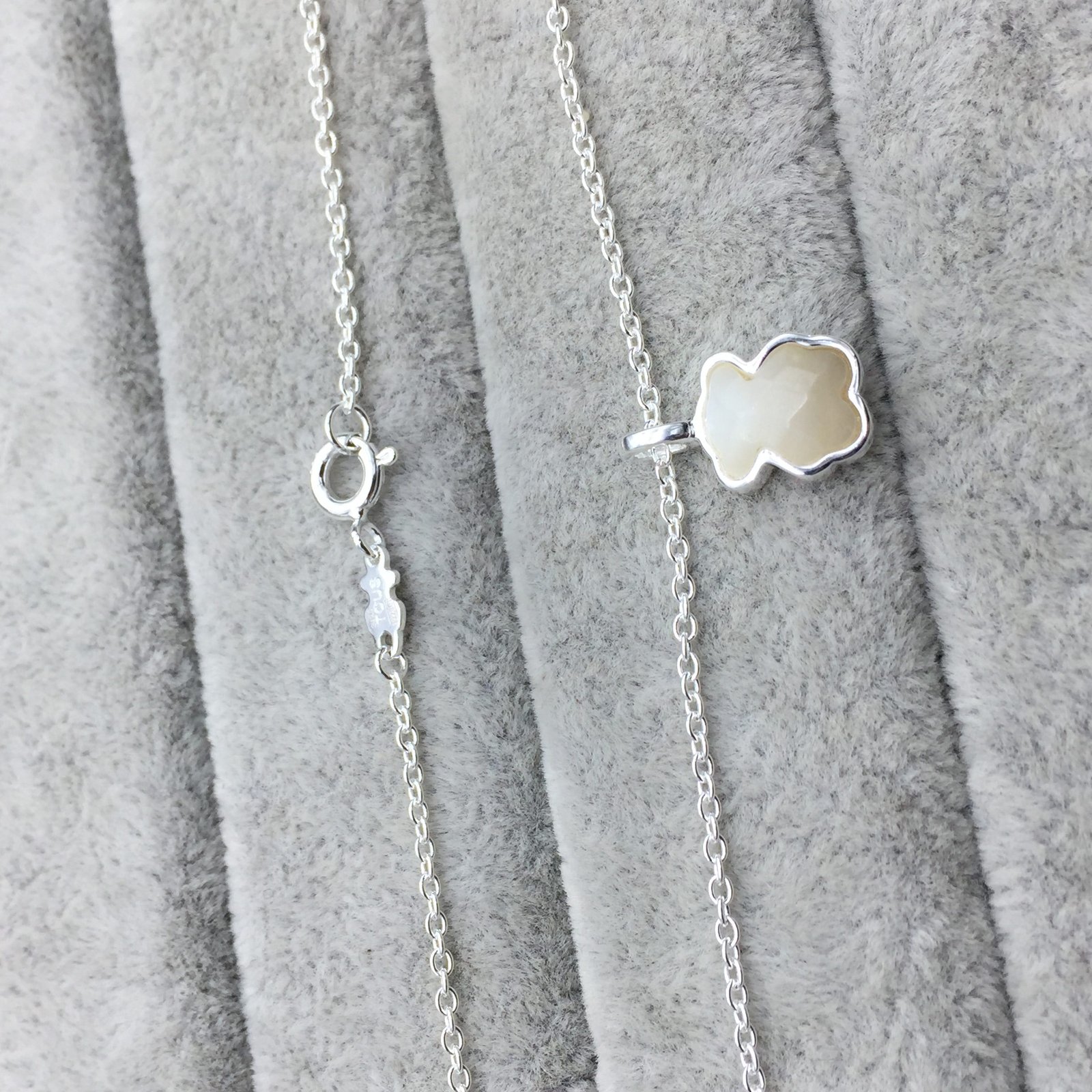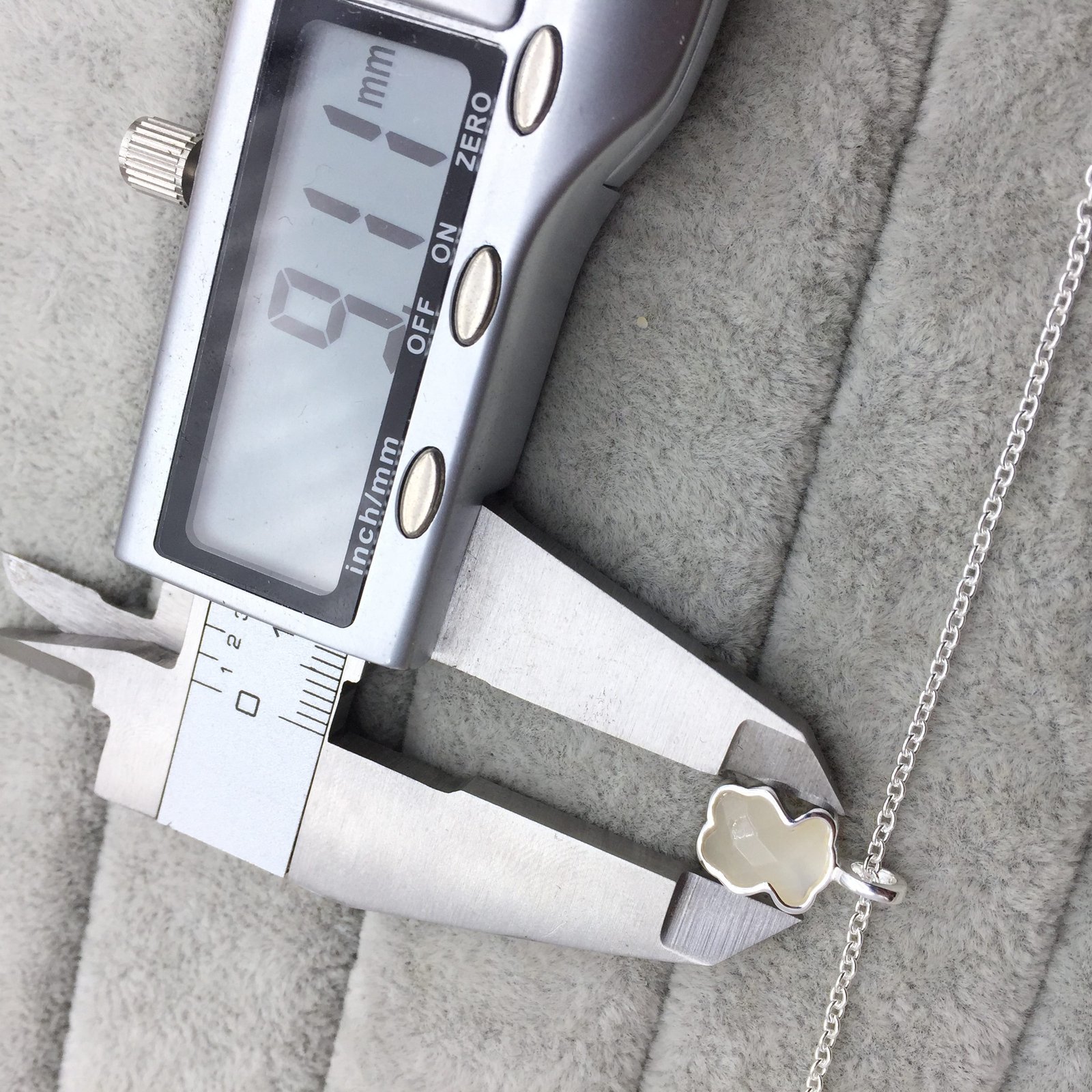 An elegant, unique, and magical neckline. It only shows this discreet and simple silver and faceted mother of pearl chain. And your look is exactly what you wanted. Special. Delicate.