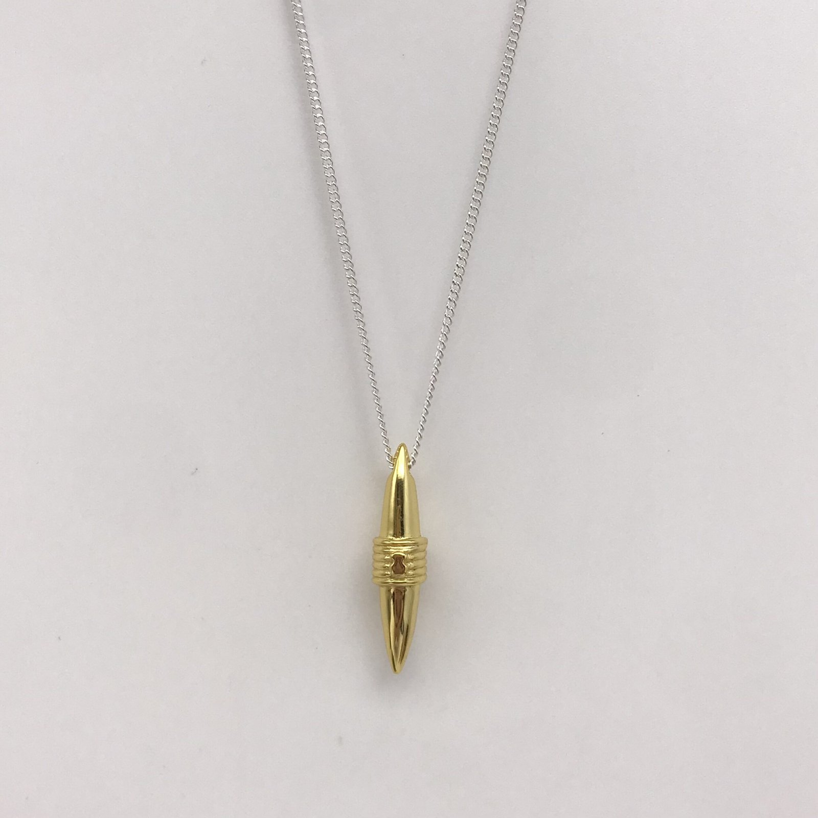 Attitude and loads of personality in this silver and silver vermeil necklace from the Lure collection. Minimalist designs that are symmetrical and unisex recreating elements of the natural world and fishing.