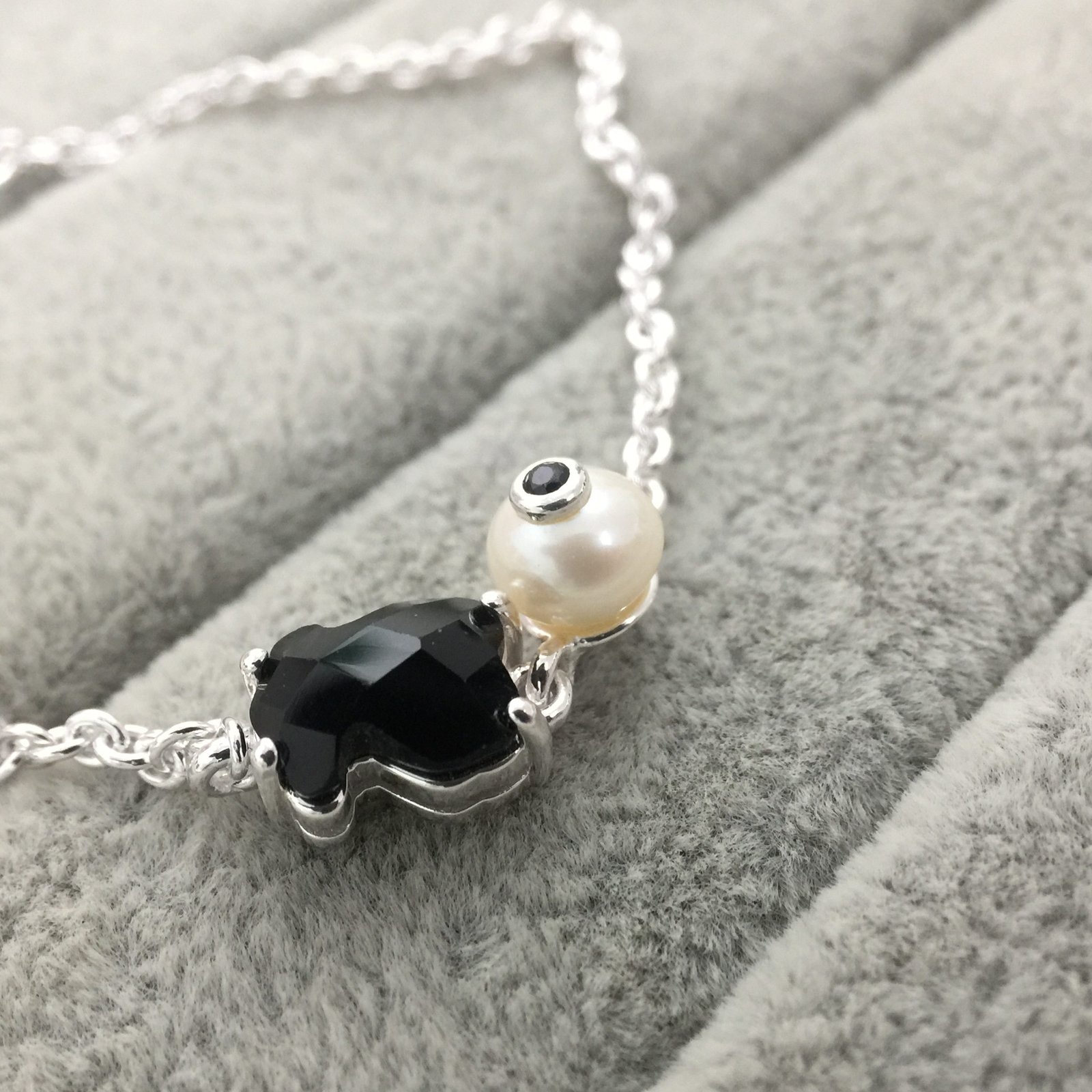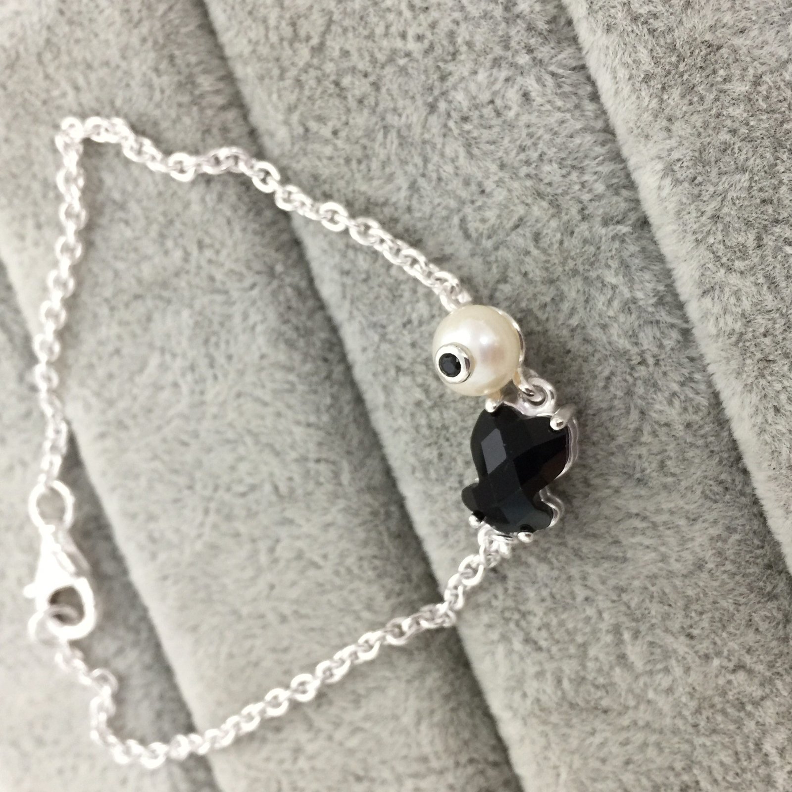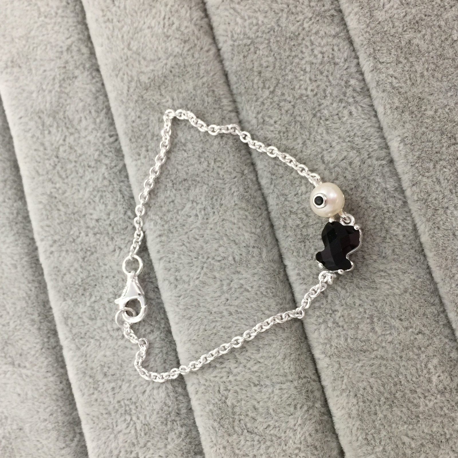 Silver Erma Bracelet with Onyx, Pearl ans Spinel
