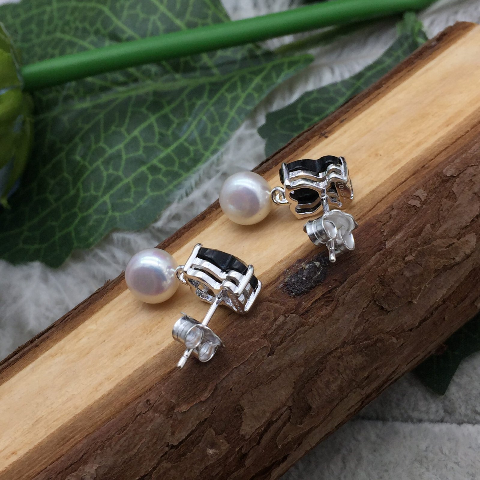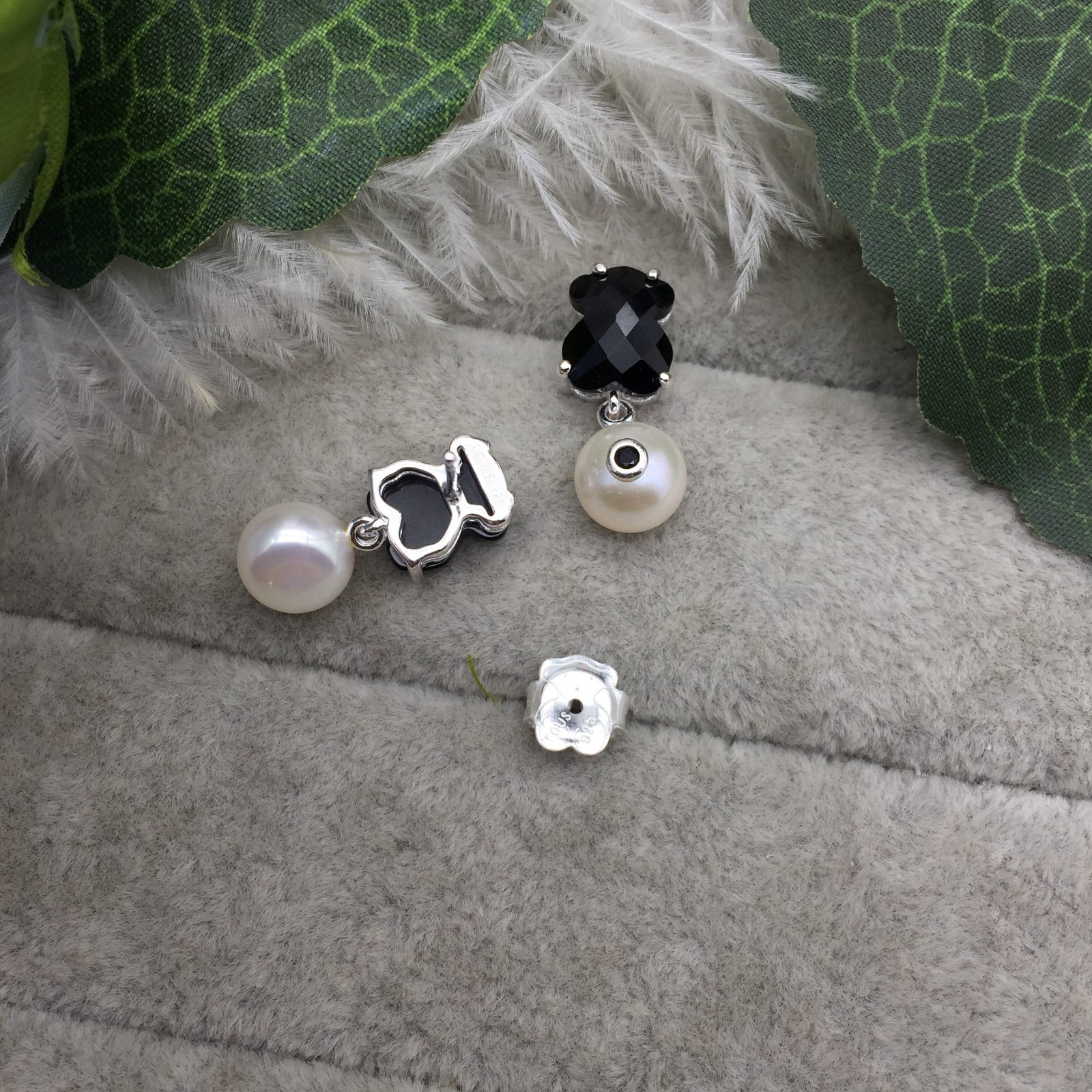 A little dose of extravagance is a requirement for any worthy wardrobe. These silver, onyx and pearl earrings are essentially all you need to complete your every ensemble.