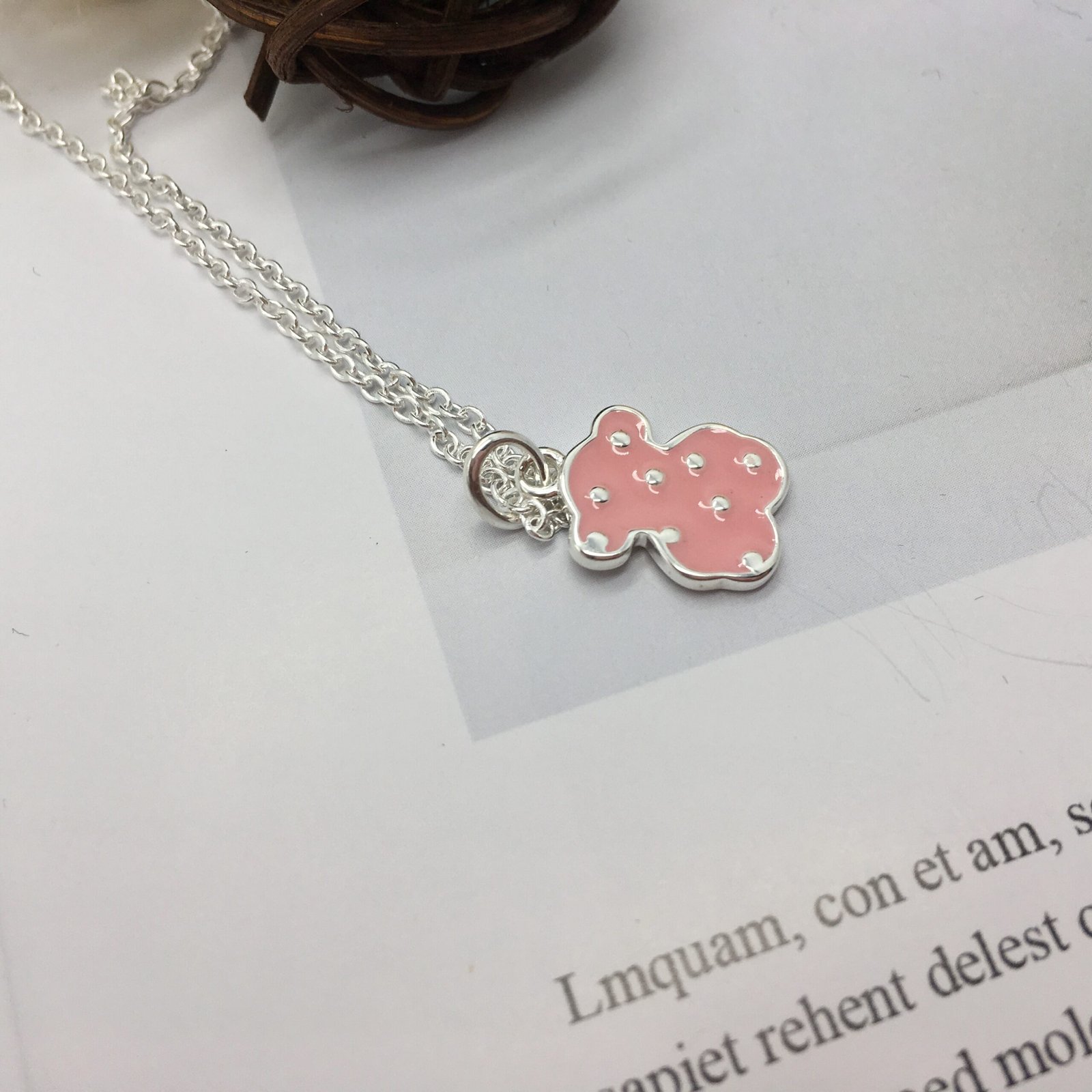 A dress or a low-cut T-shirt are twice the outfit when topped with a delicate, feminine necklace. This one in silver with our classic icon in pink enamel is perfect for it.